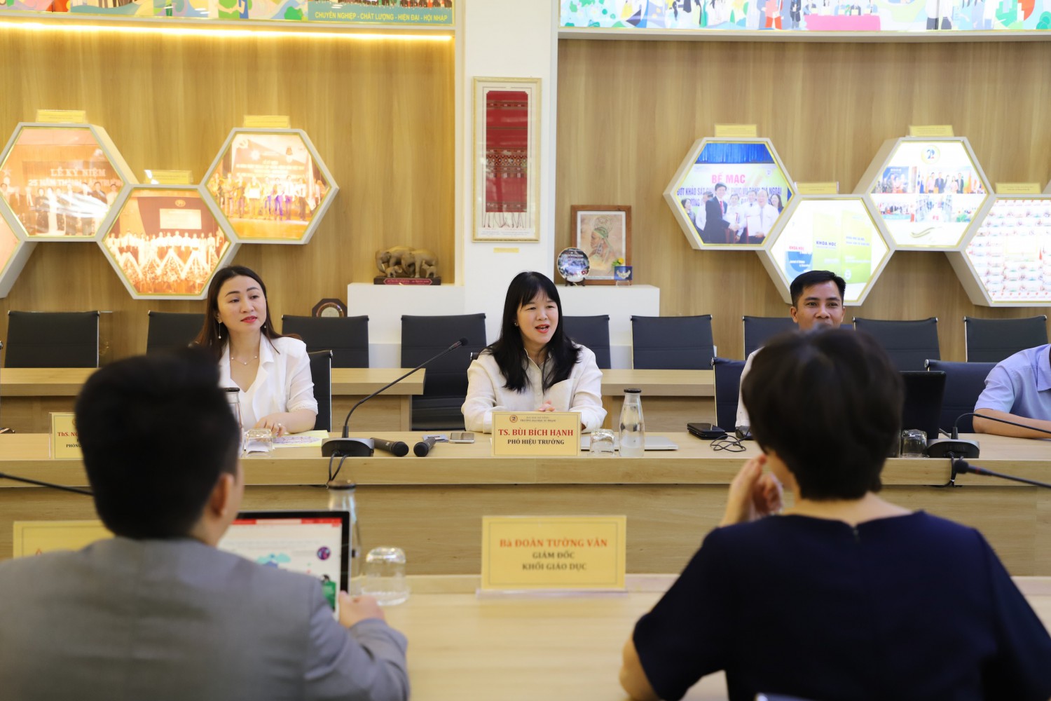 Tại buổi tiếp, TS. Bùi Bích Hạnh – Phó Hiệu trưởng nhà Trường, đã chào mừng đoàn đến thăm và làm việc tại Trường. Giới thiệu những nét tổng quan về tổng quan, nổi bật về Trường Đại học Sư phạm – ĐHĐN và Quỹ học bổng “Truyền cảm hứng UED”. Phó Hiệu trưởng cũng đã bày tỏ niềm tin, thiện chí hợp tác của Microsoft Việt Nam và nhấn mạnh cuộc gặp gỡ này đã thể hiện những định hướng cùng với chiến lược phát triển của Nhà trường.