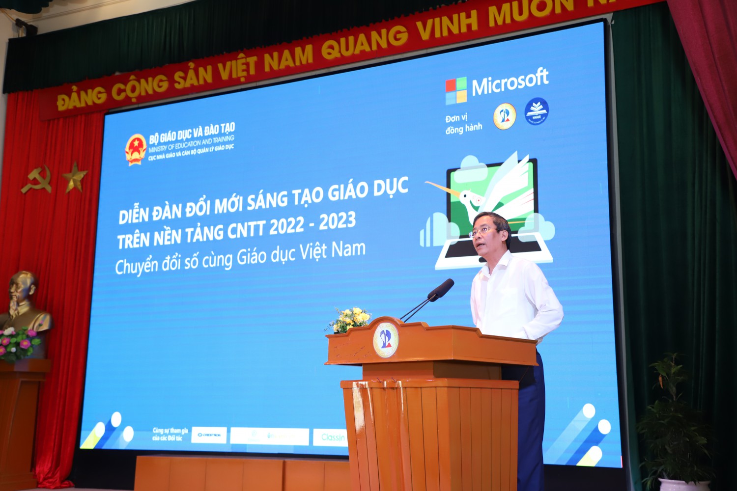 Cùng phát biểu tại diễn đàn, Ông Mai Tấn Linh – Phó Giám đốc Sở Giáo dục & Đào tạo thành phố Đà Nẵng cho biết: “Thành phố Đà Nẵng hân hạnh được Bộ GD & ĐT và Microsoft Việt Nam chọn làm địa điểm tổ chức diễn đàn và được Trường Đại học Sư phạm – ĐHĐN phối hợp tổ chức. Tạo cơ hội cho CBQL giáo viên của Đà Nẵng, cũng như các CBQL giáo viên trên cả nước được tiếp cận nội dung về chuyển đổi số trong giáo dục.”
