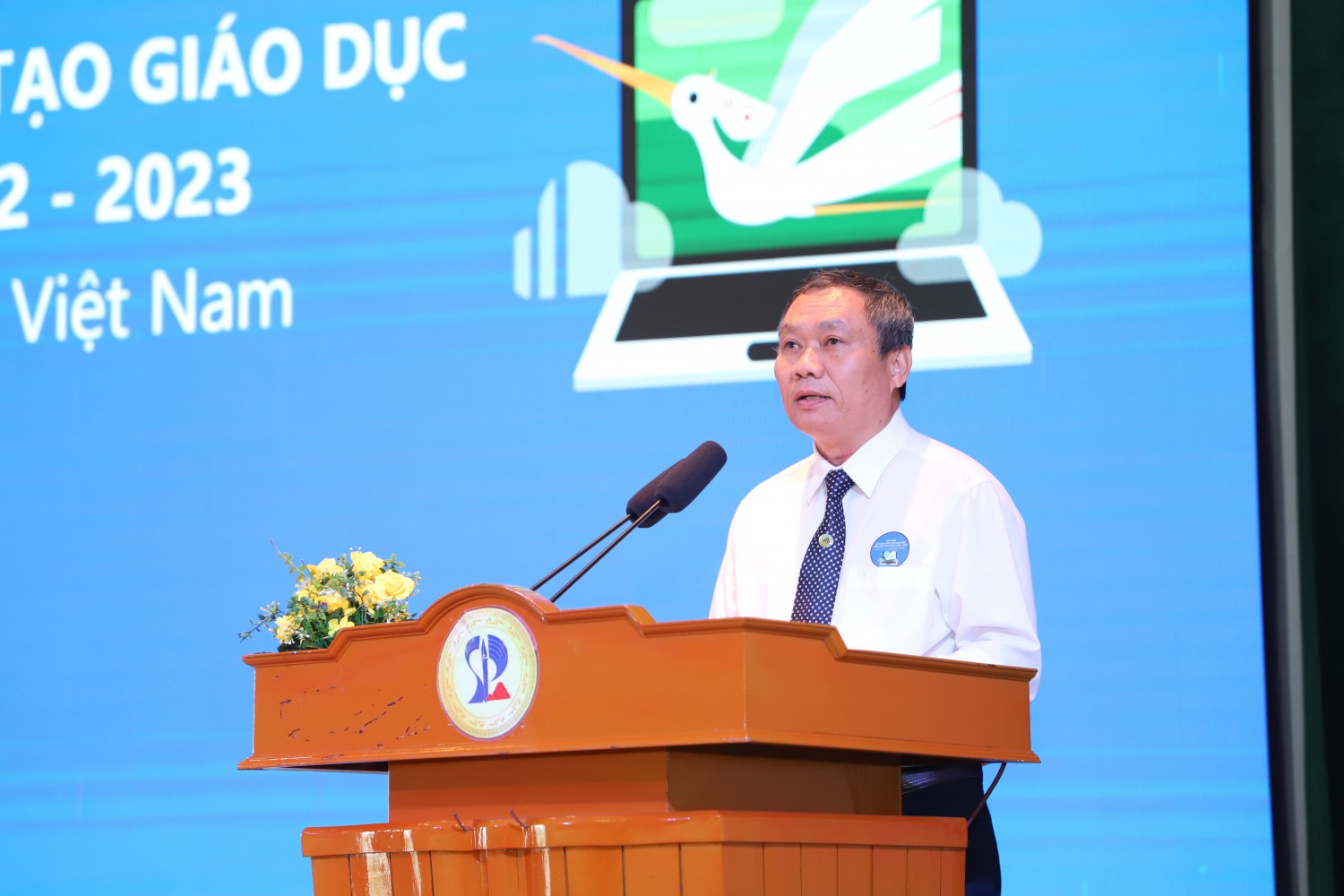 Phát biểu tại diễn đàn, TS. Vũ Minh Đức – Cục trưởng Cục Nhà giáo và Cán bộ quản lý giáo dục bày tỏ Diễn đàn sẽ thực sự là hoạt động thiết thực trong công tác phát triển bồi dưỡng đội ngũ nhà giáo và cán bộ quản lý giáo dục, thúc đẩy tinh thần đổi mới sáng tạo, nâng cao nhận thức về chuyển đổi số giáo dục trong các nhà trường và tăng cường năng lực ứng dụng CNTT trong quản lý nhà trường, dạy và học của cán bộ quản lý, giáo viên, học sinh.