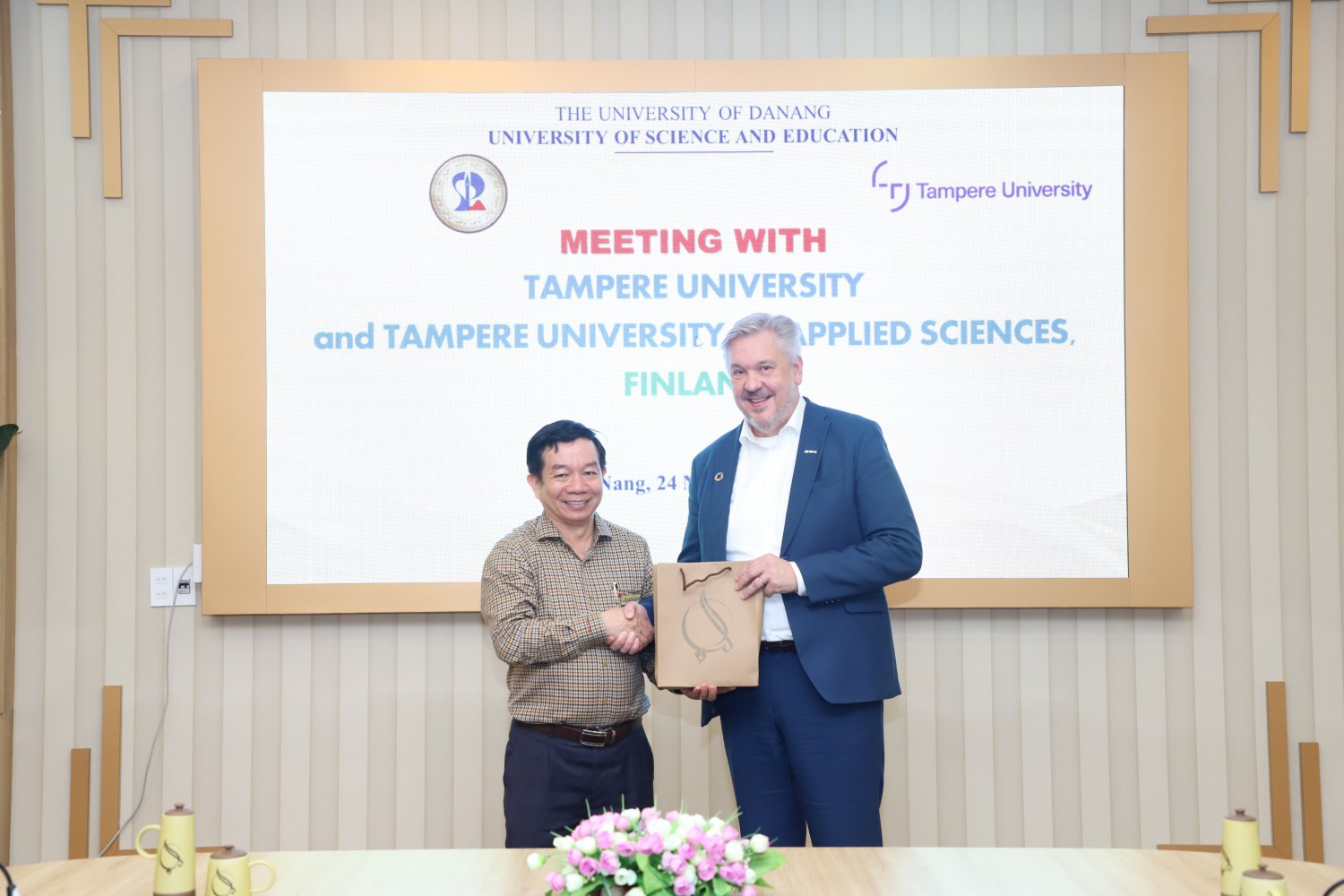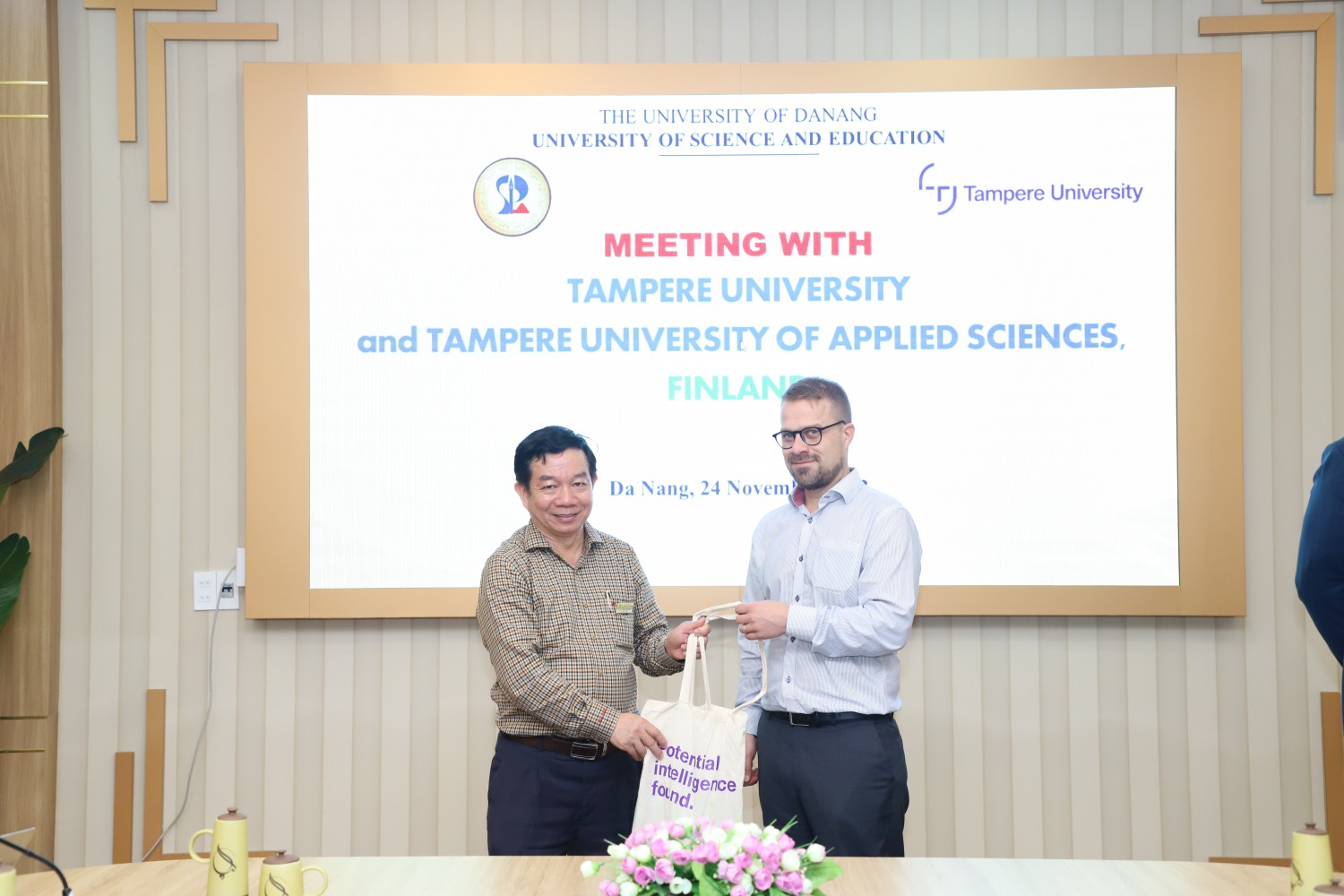 Về phía Nhà trường có sự tham dự của: PGS.TS Trần Xuân Bách – Phó Hiệu trưởng Nhà trường, TS. Nguyễn Quý Tuấn – Trưởng phòng Khoa học và Hợp tác quốc tế, đại diện Ban chủ nhiệm Khoa Tâm lý – Giáo dục và Khoa Vật lý, cùng các giảng viên tham gia dự án DIGITRAN.