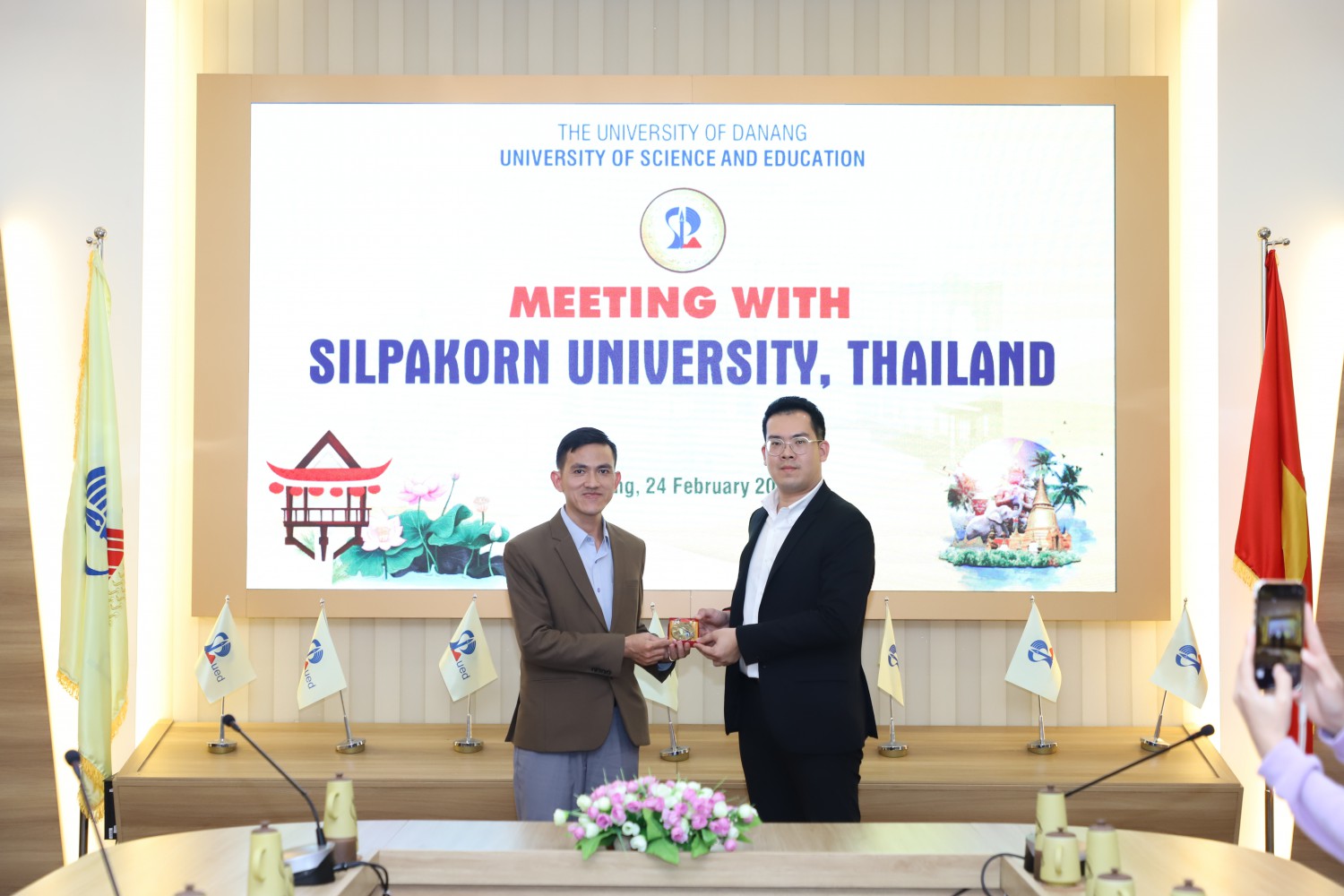 Phát biểu tại buổi làm việc, Đại diện Nhà trường vui mừng chào đón đoàn làm việc đến thăm và trao đổi hợp tác với Trường. Giới thiệu những nét tổng quan, cơ cấu, những nét nổi bật và cho biết Trường Đại học Sư phạm – ĐHĐN luôn sẵn sàng hợp tác với Đại học Silpakorn.