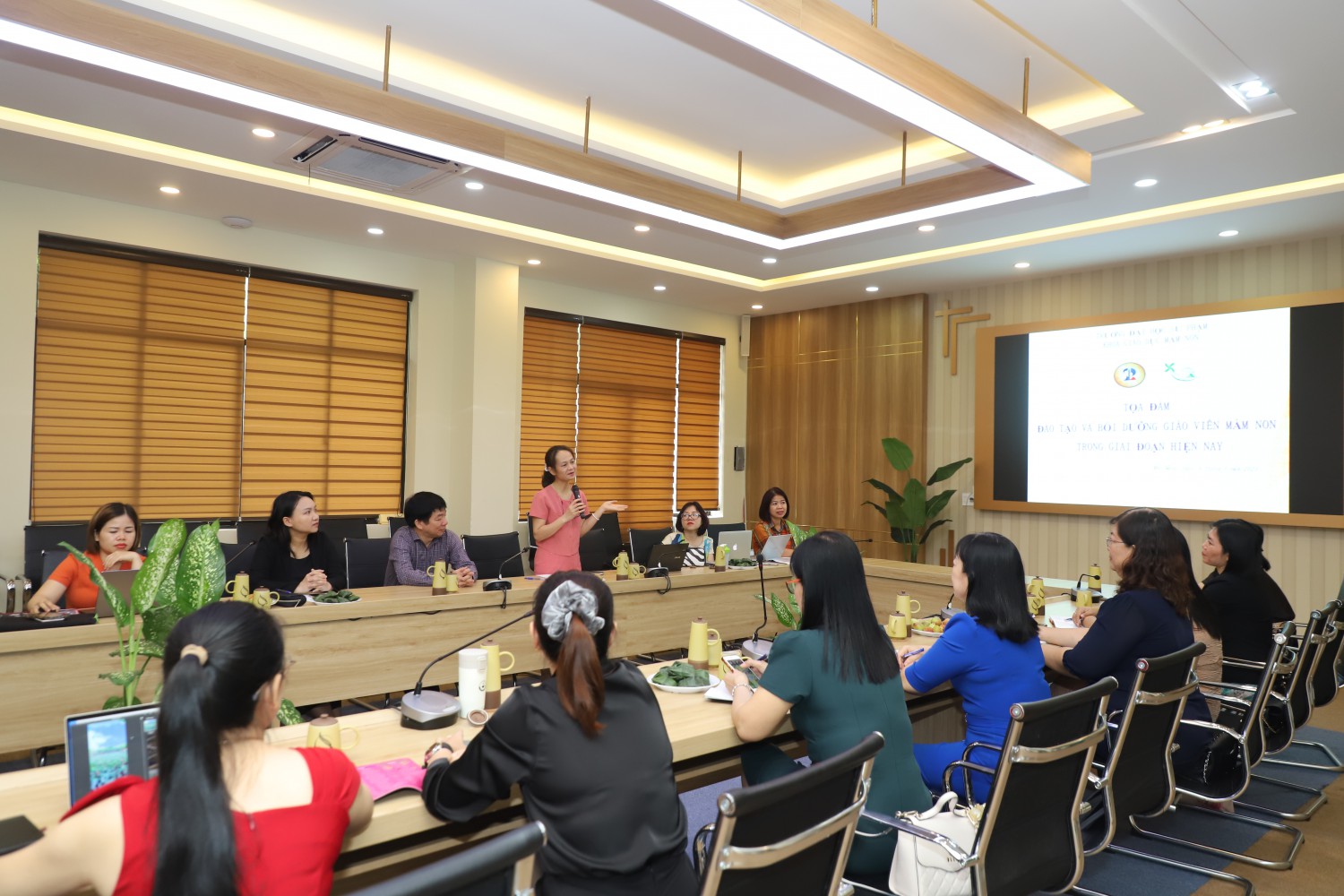 Tại buổi làm việc, đại diện của 2 đơn vị đã có buổi thảo luận; giao lưu trao đổi về Đào tạo và bồi dưỡng giáo viên mầm non trong giai đoạn hiện nay; trao đổi các nội dung: Mô hình đào tạo, bồi dưỡng giáo viên mầm non (GVMN) theo năng lực: mô hình đào đào tạo song song, mô hình đào tạo nối tiếp; Xây dựng Khung năng lực nghề GVMN và Chương trình đào tạo, bồi dưỡng GVMN theo năng lực; Phương pháp và hình thức tổ chức đào tạo, bồi dưỡng GVMN theo năng lực; Đánh giá hoạt động đào tạo, bồi dưỡng GVMN theo năng lực.