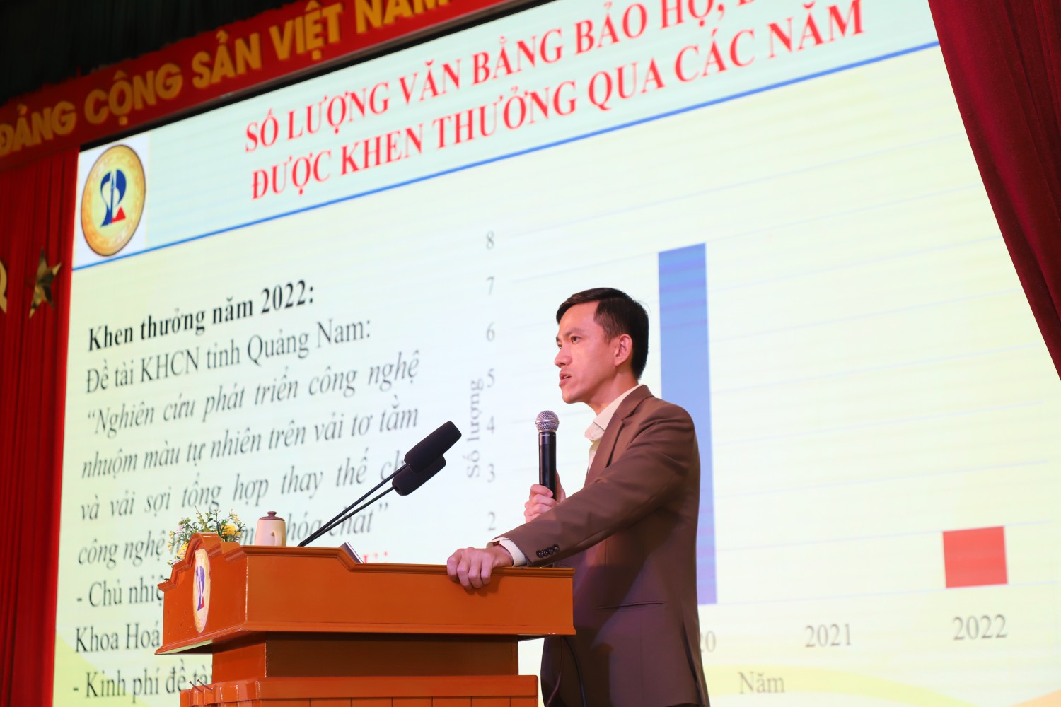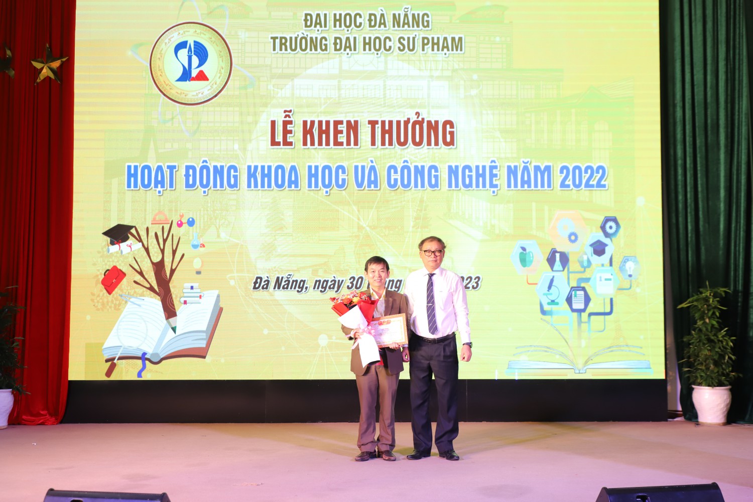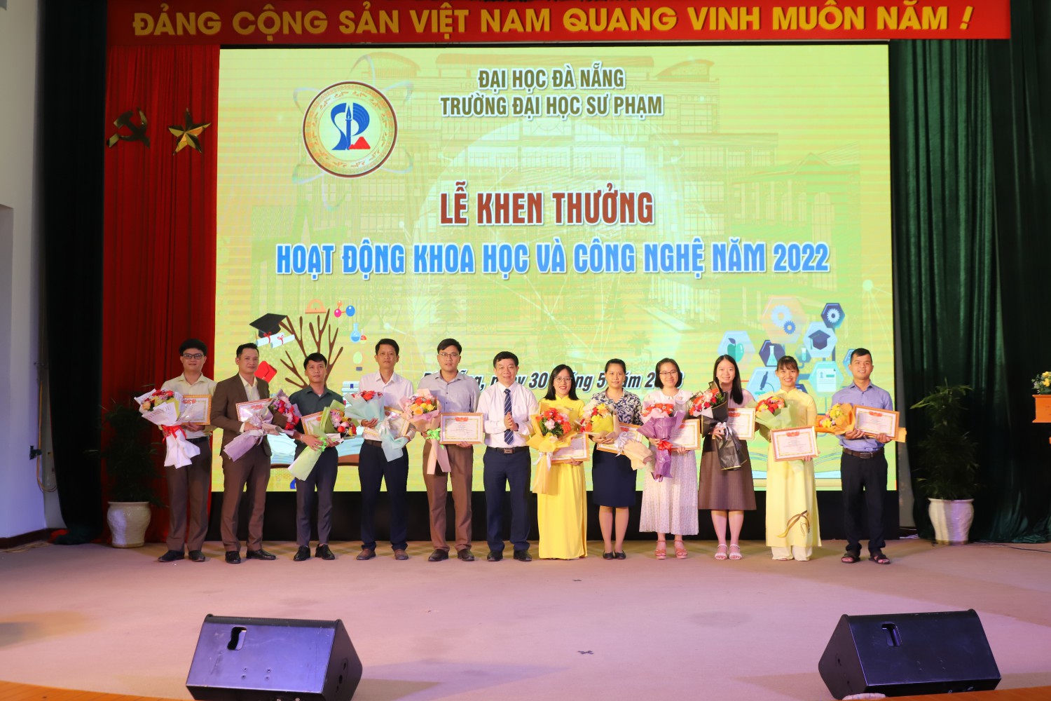 Tại chương trình, Nhà trường đã khen thưởng 56 giảng viên cho các kết quả hoạt động KHCN năm 2021 và 2022.