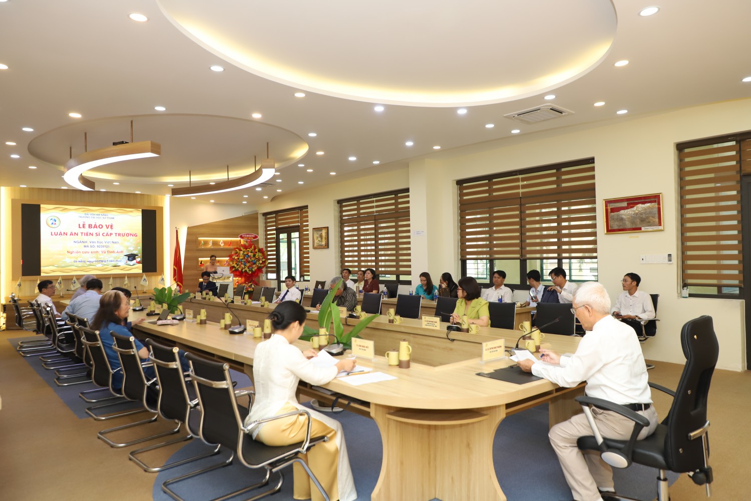 Hội đồng đánh giá luận án tiến sĩ gồm 07 thành viên, đến từ Trường Đại học Khoa học Xã hội và Nhân văn – Đại học Quốc gia TP. HCM, Viện Văn học – Viện Hàn lâm Khoa học Xã hội Việt Nam, Trường Đại học Khoa học – Đại học Huế, Trường Đại học Sư phạm – Đại học Đà Nẵng và các nhà nghiên cứu độc lập thuộc ngành Văn hoá học và Lý luận văn học.