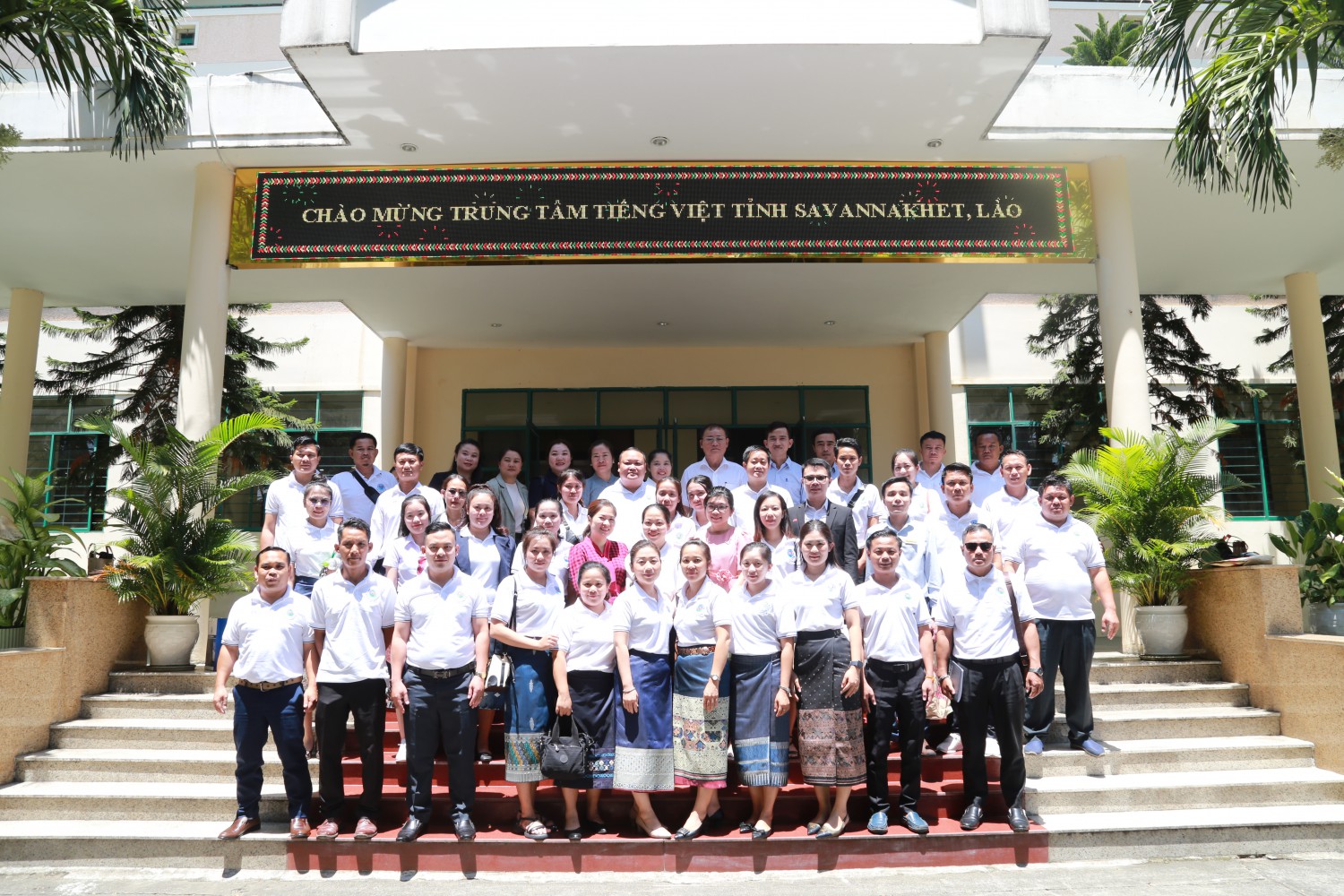 Tham gia đoàn công tác có bà Paphatsone Phanthana, Phó Trưởng Ban tổ chức tỉnh Savannakhet; đại diện lãnh đạo Sở Giáo dục và Thể thao; Ban lãnh đạo và các giáo viên, học viên của Trung tâm tiếng Việt, tỉnh Savannakhet.