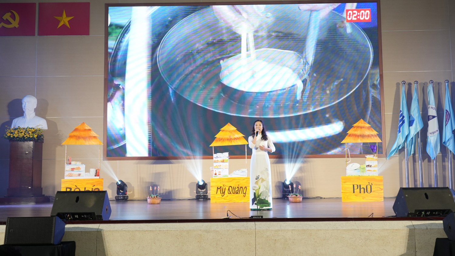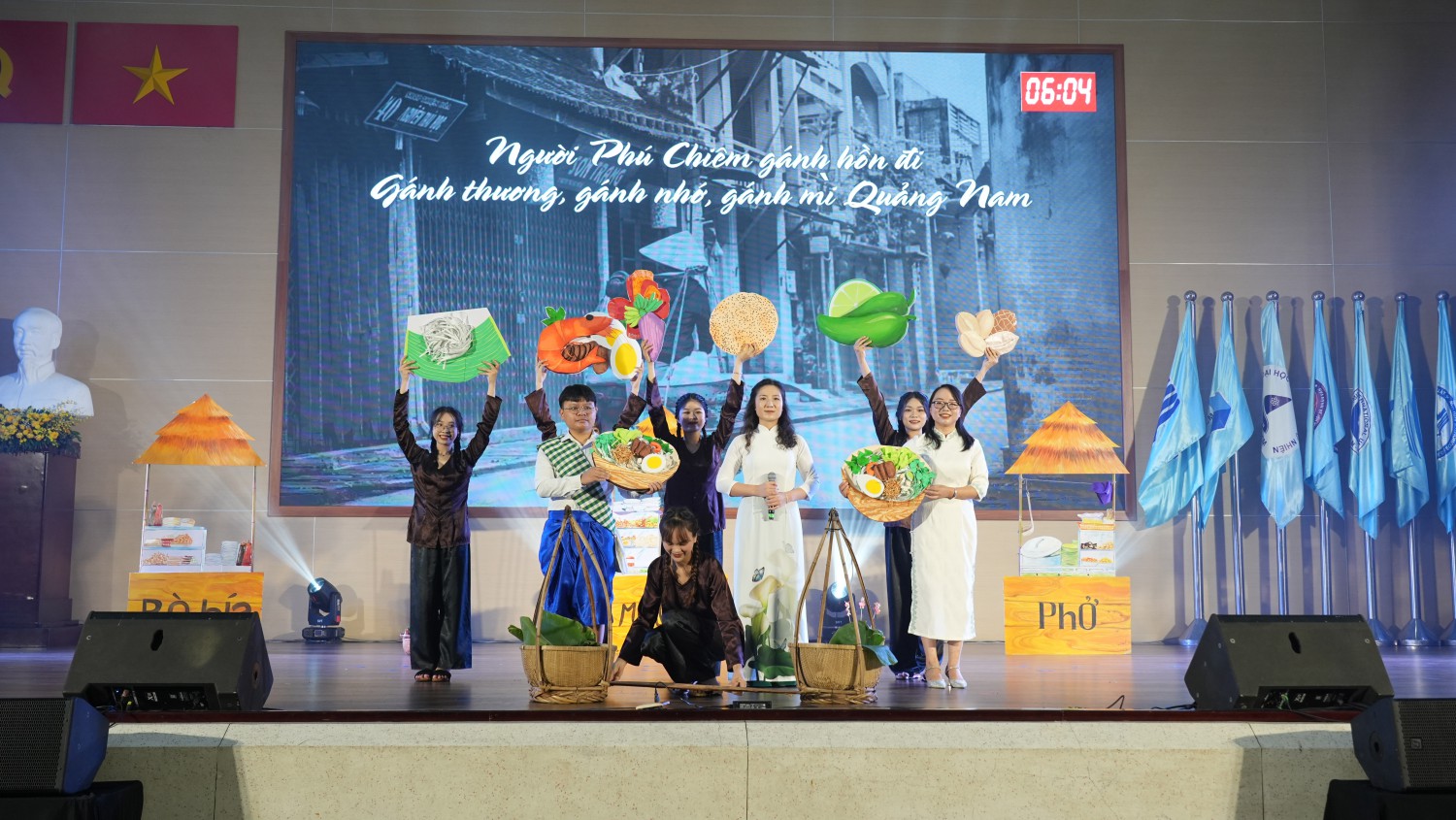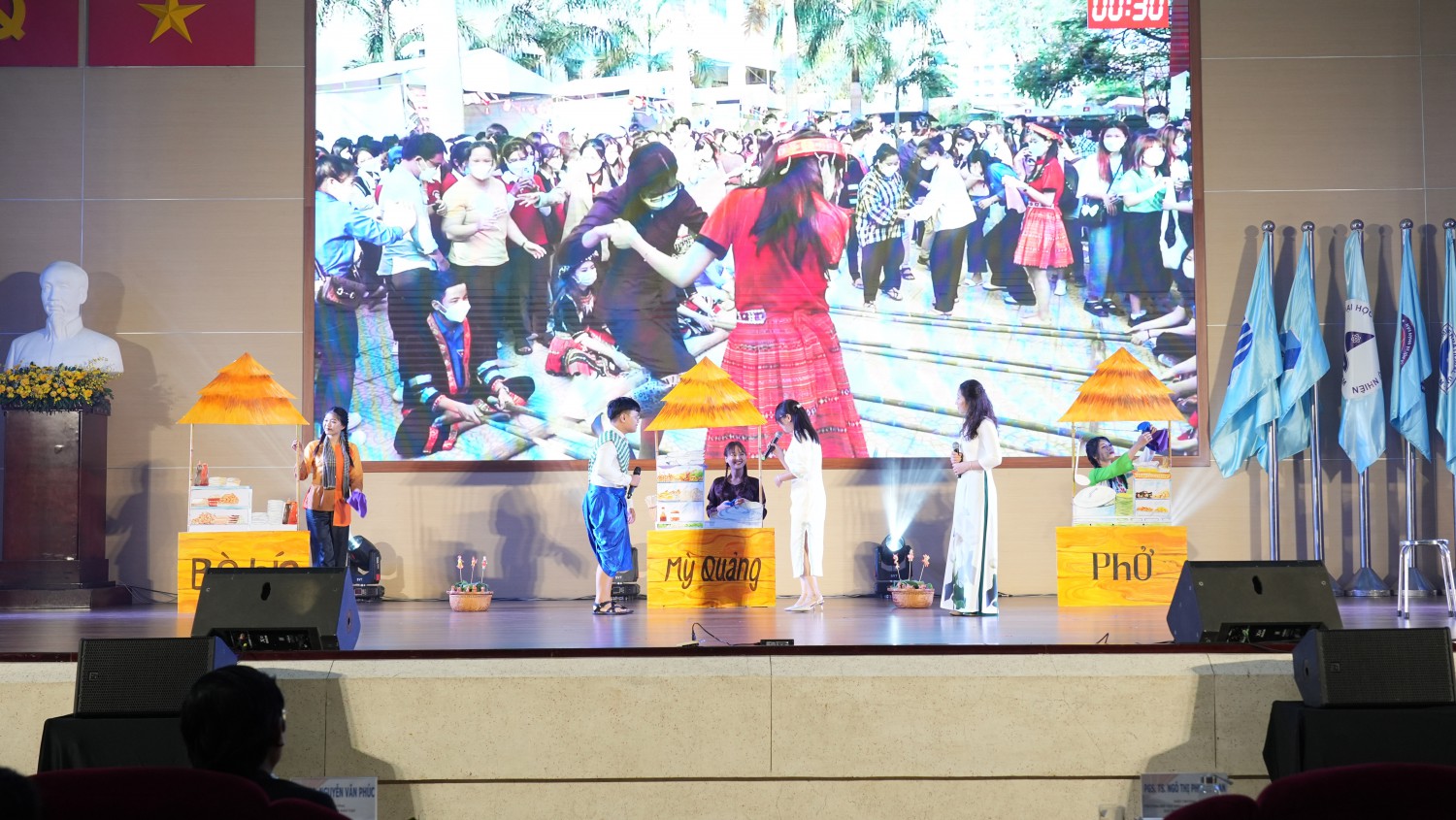 Với chủ đề “Việt Nam trong tôi”, đội thi đại diện Trường Đại học Sư phạm – ĐHĐN đã mang không khí “đáng sống” của thành phố Đà Nẵng và món Mì Quảng thương nhớ tái hiện lại trên sân khấu.