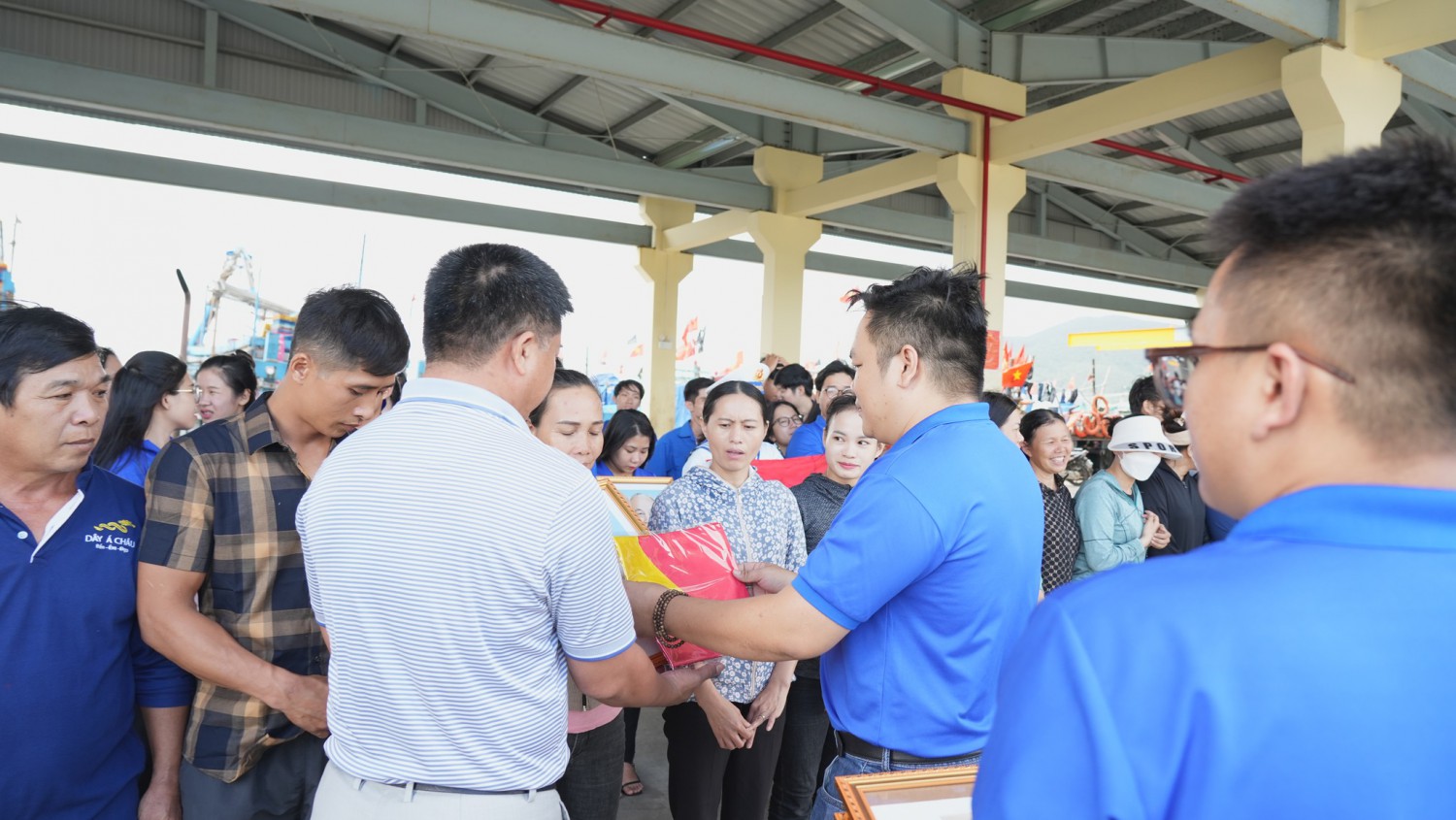 Ngoài ra, Đoàn trường còn phối hợp với các đơn vị Trung tâm Tìm kiếm Cứu nạn Biên phòng 252 và Đoàn phường Thọ Quang tặng cờ Tổ quốc, ảnh Bác, áo và phao cứu sinh cho ngư dân bám biển.