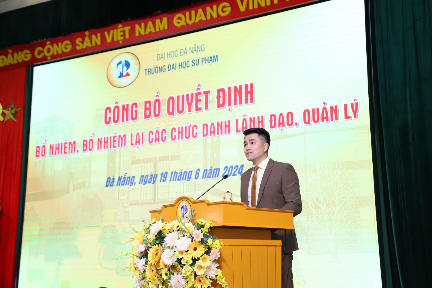 Thay mặt các cán bộ, giảng viên được bổ nhiệm lần này, TS. Trương Trung Phương – Trưởng khoa, Khoa Lịch sử bày tỏ biết ơn đối với Đảng ủy, Ban Giám đốc ĐHĐN; Đảng ủy, Ban Giám hiệu và các đoàn thể Nhà trường đã tin tưởng, giới thiệu để bổ nhiệm vào các chức danh lãnh đạo, quản lý lần này. Đây chính là nền tảng, là động lực để tiếp tục rèn luyện, tu dưỡng bản thân, đóng góp hết sức mình cho sự phát triển lớn mạnh của Trường Đại học Sư phạm – ĐHĐN, ngôi trường có bề dày lịch sử gần 50 năm. Nỗ lực phấn đấu, rèn luyện để hoàn thành xuất sắc các nhiệm vụ được giao.