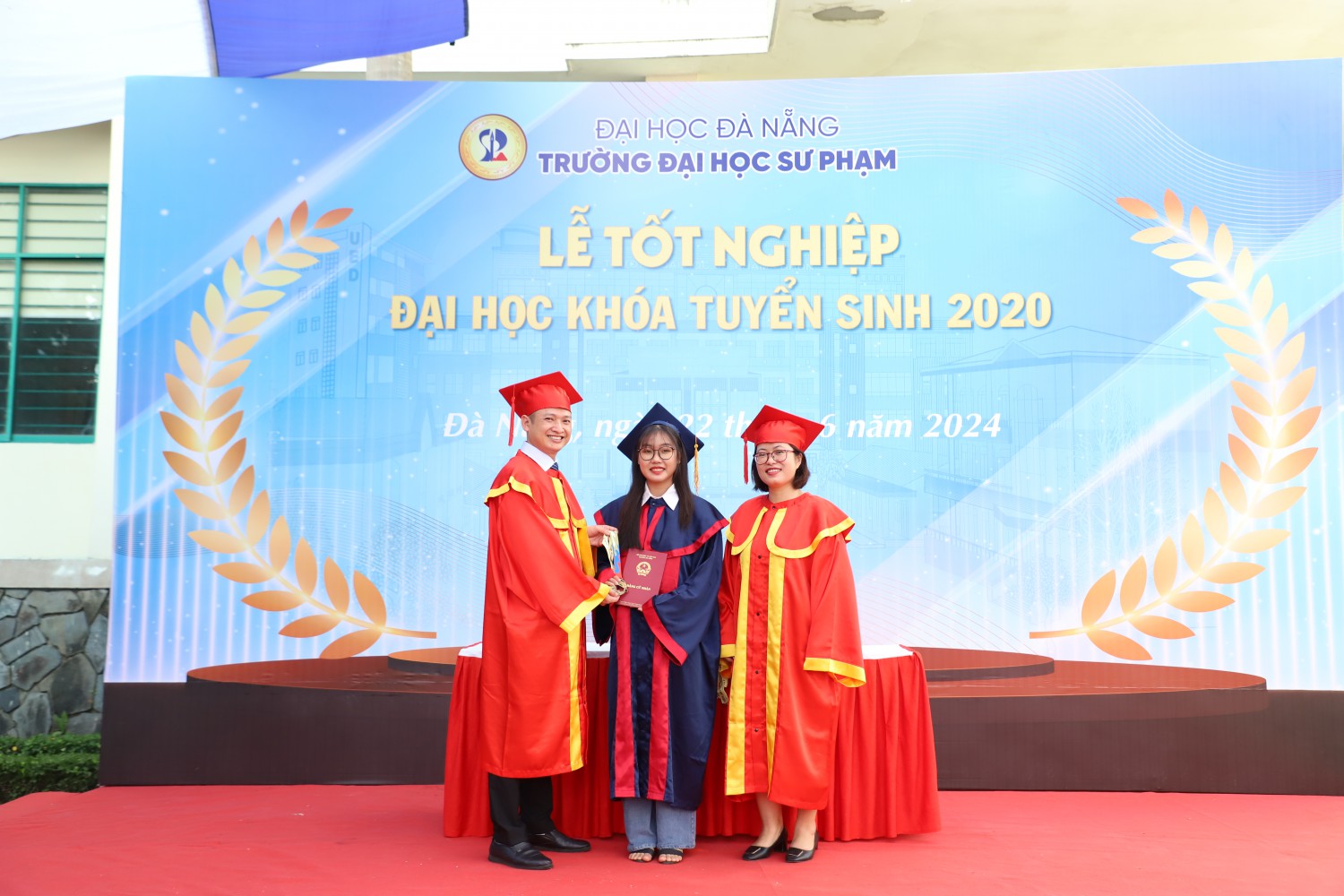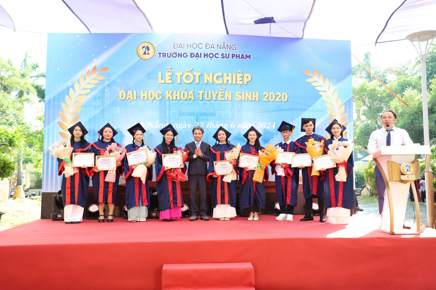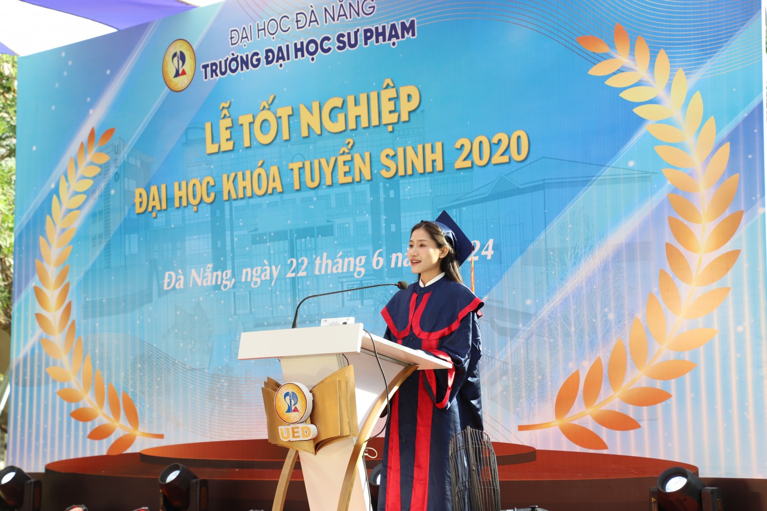 “Ngày hôm nay, các em hoàn toàn xứng đáng với học vị cử nhân và xứng đáng tự hào là người thành công ở lứa tuổi của mình. Bởi vì các em đã vượt qua được rất nhiều thách thức để góp mặt tại buổi lễ này; nhất là các em đã vượt qua đại dịch thế kỉ, ngay những ngày đầu nhập học. Trường Đại học Sư phạm – ĐHĐN cũng rất tự hào về các em và cảm ơn các em đã đến, đã đóng góp công sức của mình vào cuộc chiến ấy!.