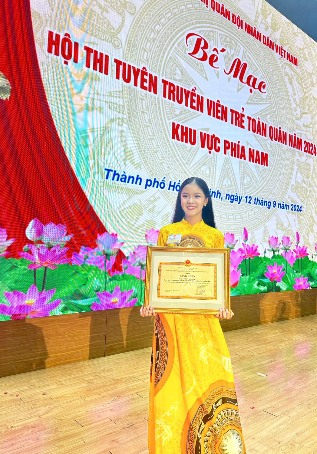 Đặc biệt, sinh viên Phạm Minh Thư, lớp 23CBC1, khoa Ngữ văn, Trường Đại học Sư phạm – ĐHĐN là một trong 2 tuyên truyền viên của Quân khu 5 đạt thành tích xuất sắc tại Hội thi lần này và vinh dự nhận bằng khen của Chủ nhiệm Tổng cục Chính trị Quân đội nhân dân Việt Nam.