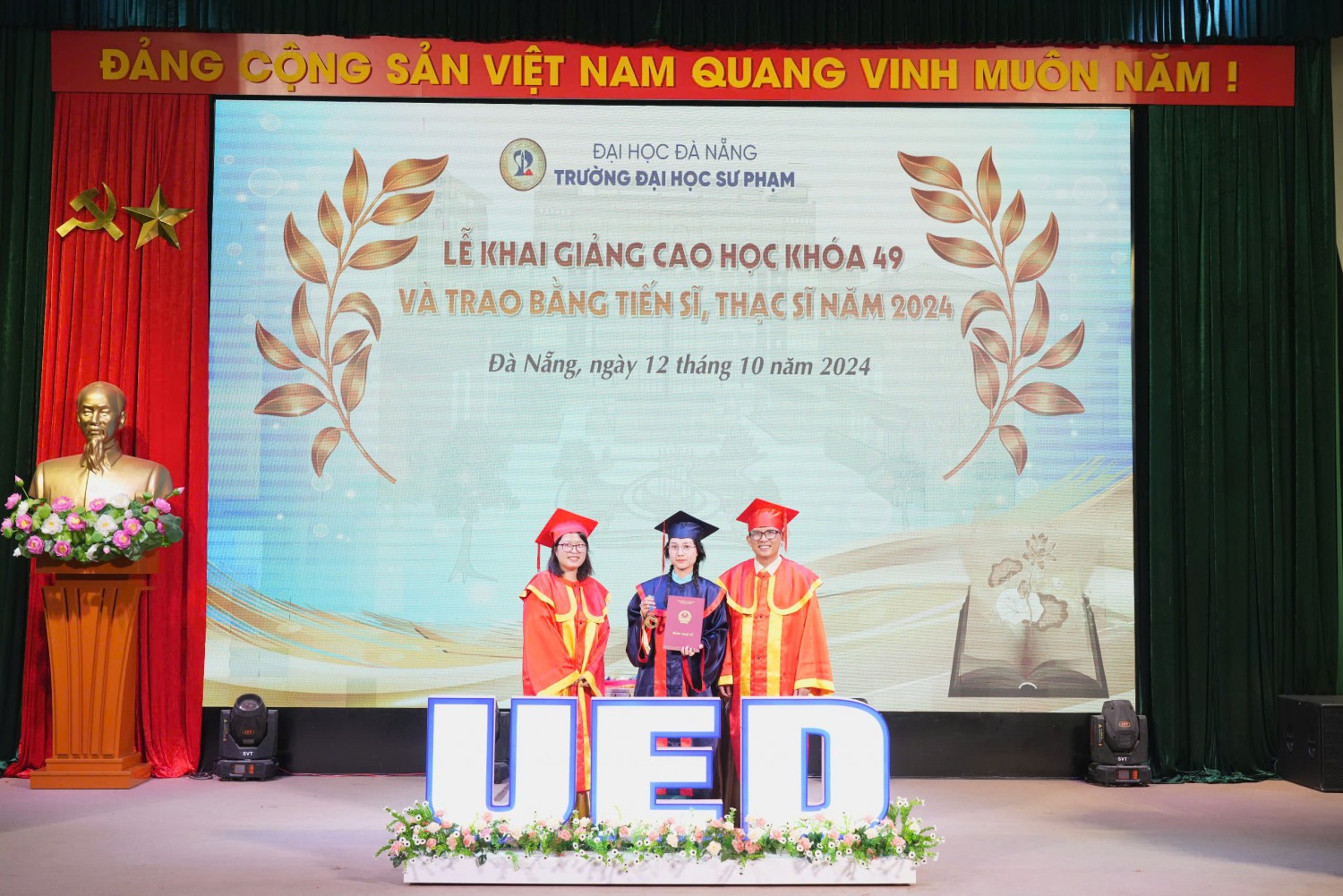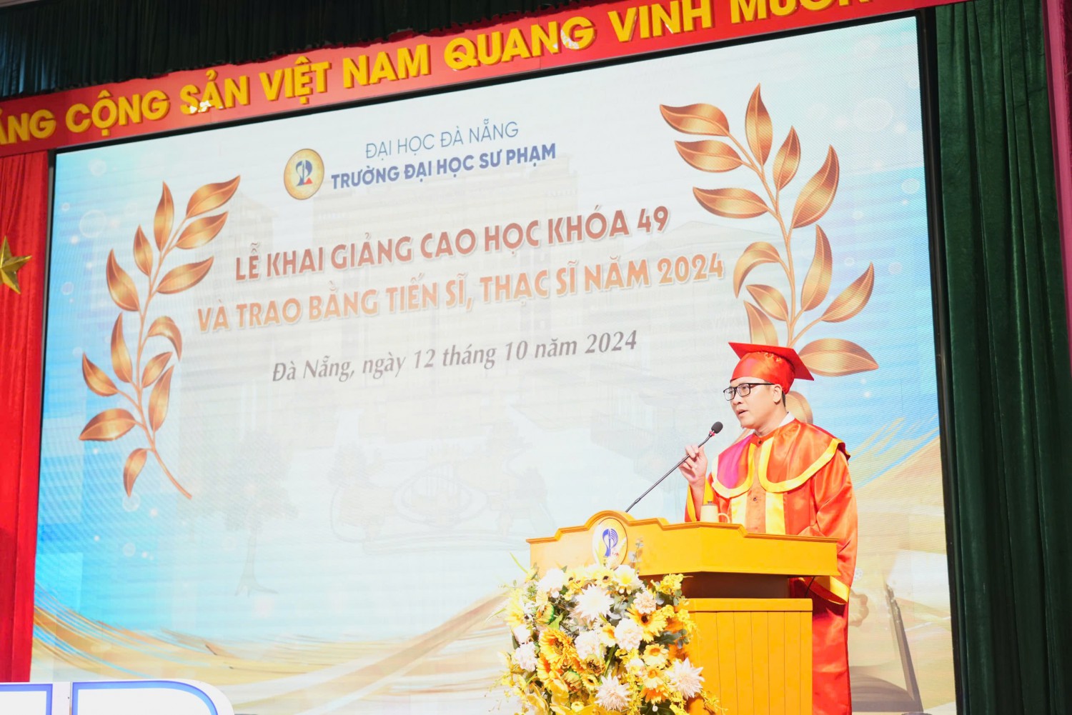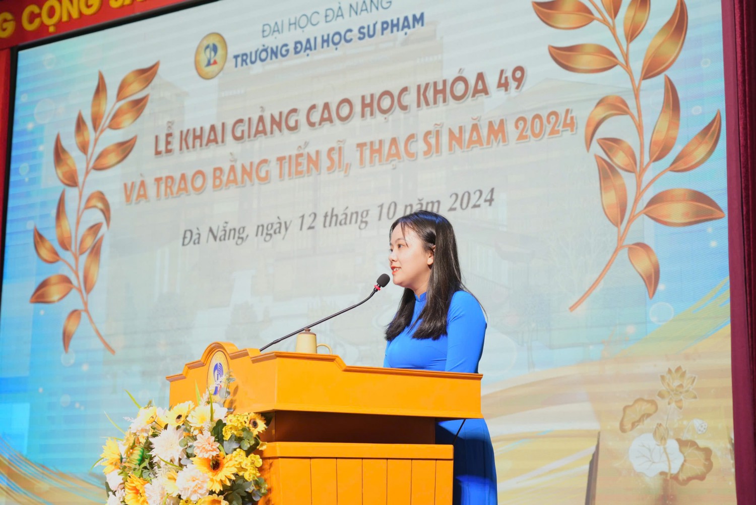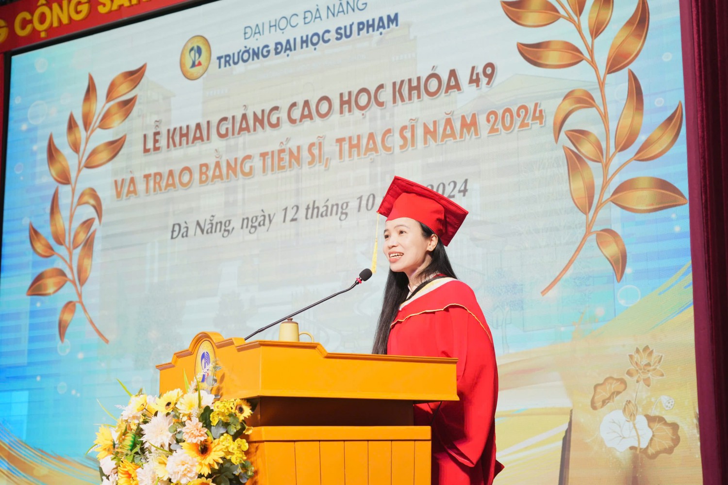 Đại diện cho các học viên cao học khóa 49 năm 2024, học viên Nguyễn Thị Hồng Hạnh – ngành Giáo dục học (chuyên ngành Giáo dục tiểu học) xin hứa sẽ không ngừng phấn đấu trong học tập, nghiên cứu; rèn luyện, tu dưỡng đạo đức… để đạt được thành tích tốt nhất, để cùng với các thế hệ người học của trường viết tiếp truyền thống vẻ vang của Trường Đại học Sư phạm – ĐHĐN.