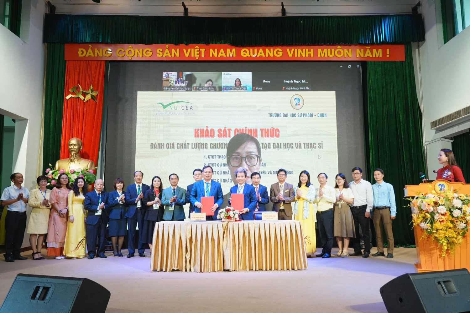 Kết thúc phiên bế mạc, GS. TS Nguyễn Hữu Đức – Trưởng Đoàn đánh giá ngoài, đại diện Trung tâm KĐCLGD – ĐHQGHN và PGS.TS. Võ Văn Minh – Hiệu trưởng Trường Đại học Sư phạm – ĐHĐN đã ký biên bản hoàn thành đợt khảo sát chính thức phục vụ đánh giá chất lượng Nhà trường.