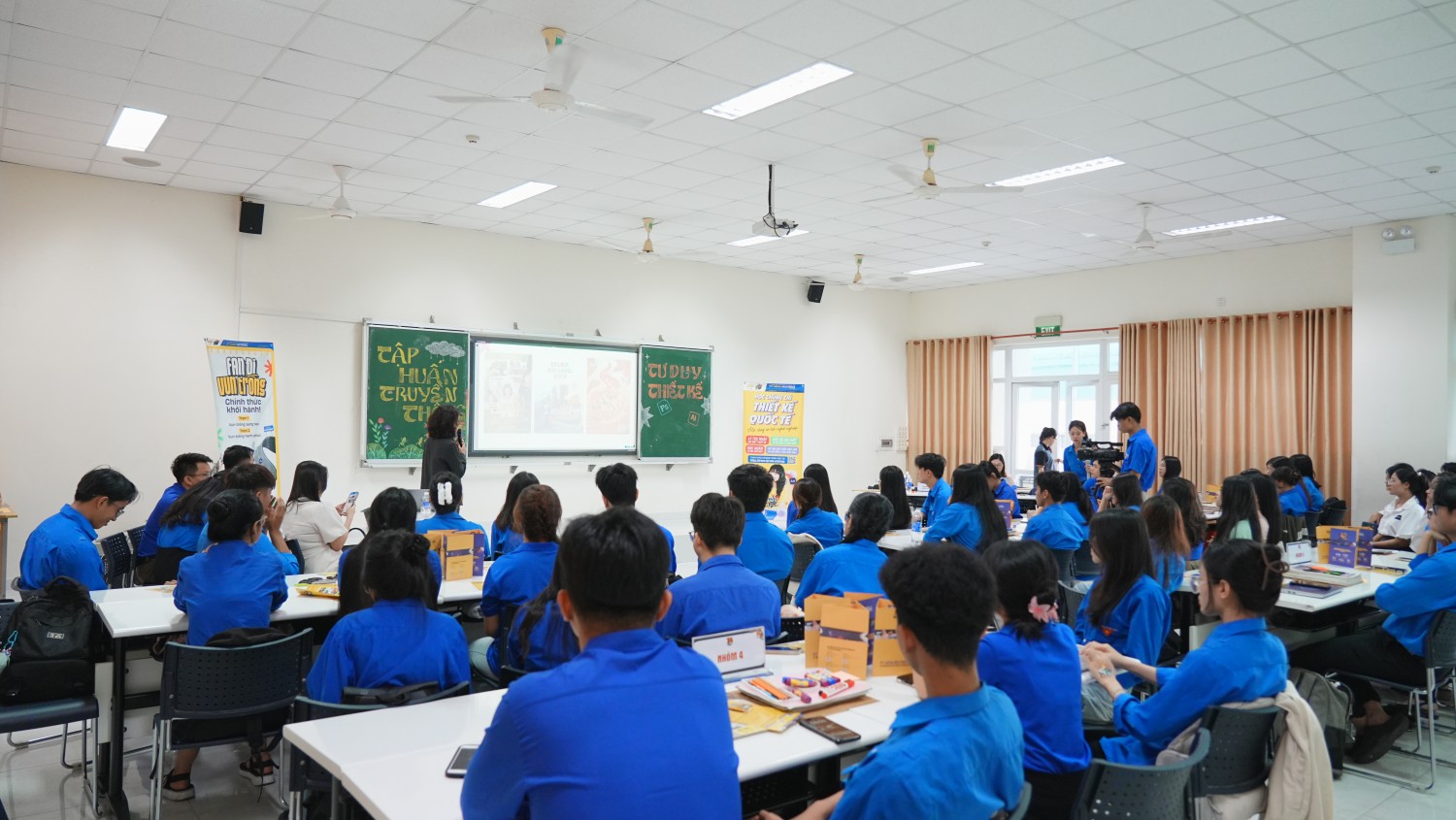 Buổi tập huấn có sự tham dự của 60 bạn đoàn viên là cán bộ phụ trách truyền thông Đoàn – Hội Nhà trường.