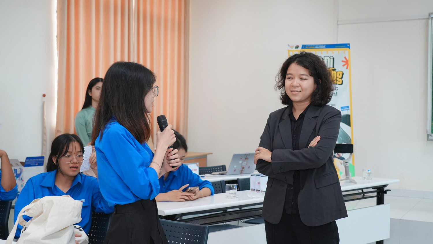 Bạn Đỗ Nguyễn Lê Na – sinh viên lớp 23STC bày tỏ: “Buổi tập huấn đã mang lại cho mình rất nhiều kiến thức bổ ích để vận dụng vào việc thiết kế một poster đảm bảo nội dung và hình thức. Từ đó mình có thể áp dụng vào các hoạt động truyền thông của lớp, của các câu lạc bộ tại trường để nâng cao chất lượng truyền thông”.