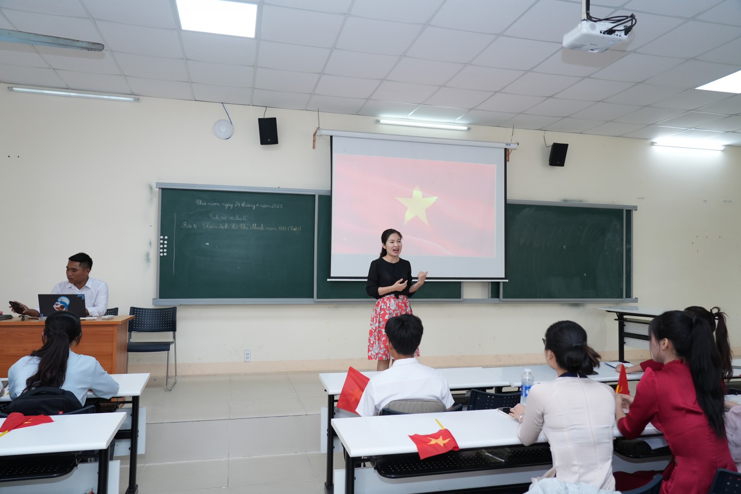 Không chỉ đơn thuần là truyền đạt tri thức, các lớp học tại nhà trường trong dịp đặc biệt này còn trở thành không gian giáo dục lòng yêu nước, lý tưởng cách mạng, khơi gợi tinh thần tự hào dân tộc cho thế hệ trẻ. Trong mỗi tiết học, hình ảnh lá cờ đỏ sao vàng được các bạn sinh viên giương cao đầy hào hứng chính là biểu tượng sống động của lòng biết ơn và khát vọng cống hiến cho quê hương đất nước.
