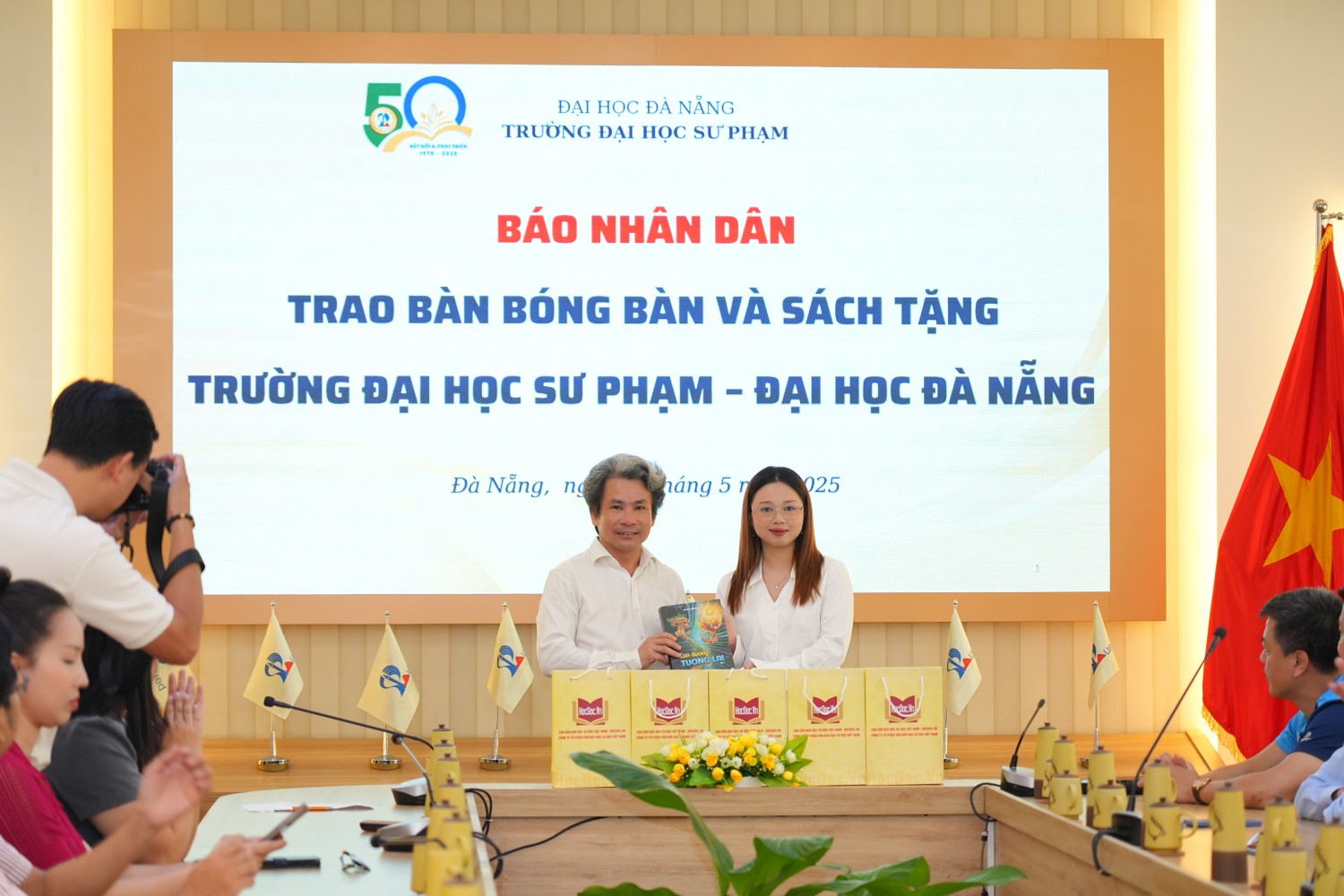 Không chỉ dừng lại ở món quà thể thao, Báo Nhân Dân còn dành tặng các đầu sách quý phục vụ học tập và nghiên cứu, thể hiện sự quan tâm sâu sắc đến đời sống tinh thần và học thuật của sinh viên.