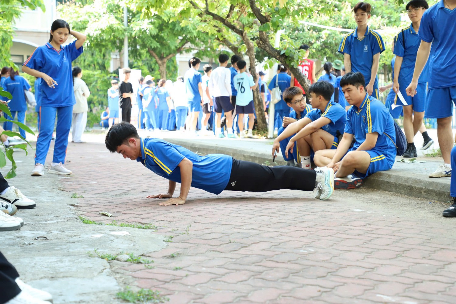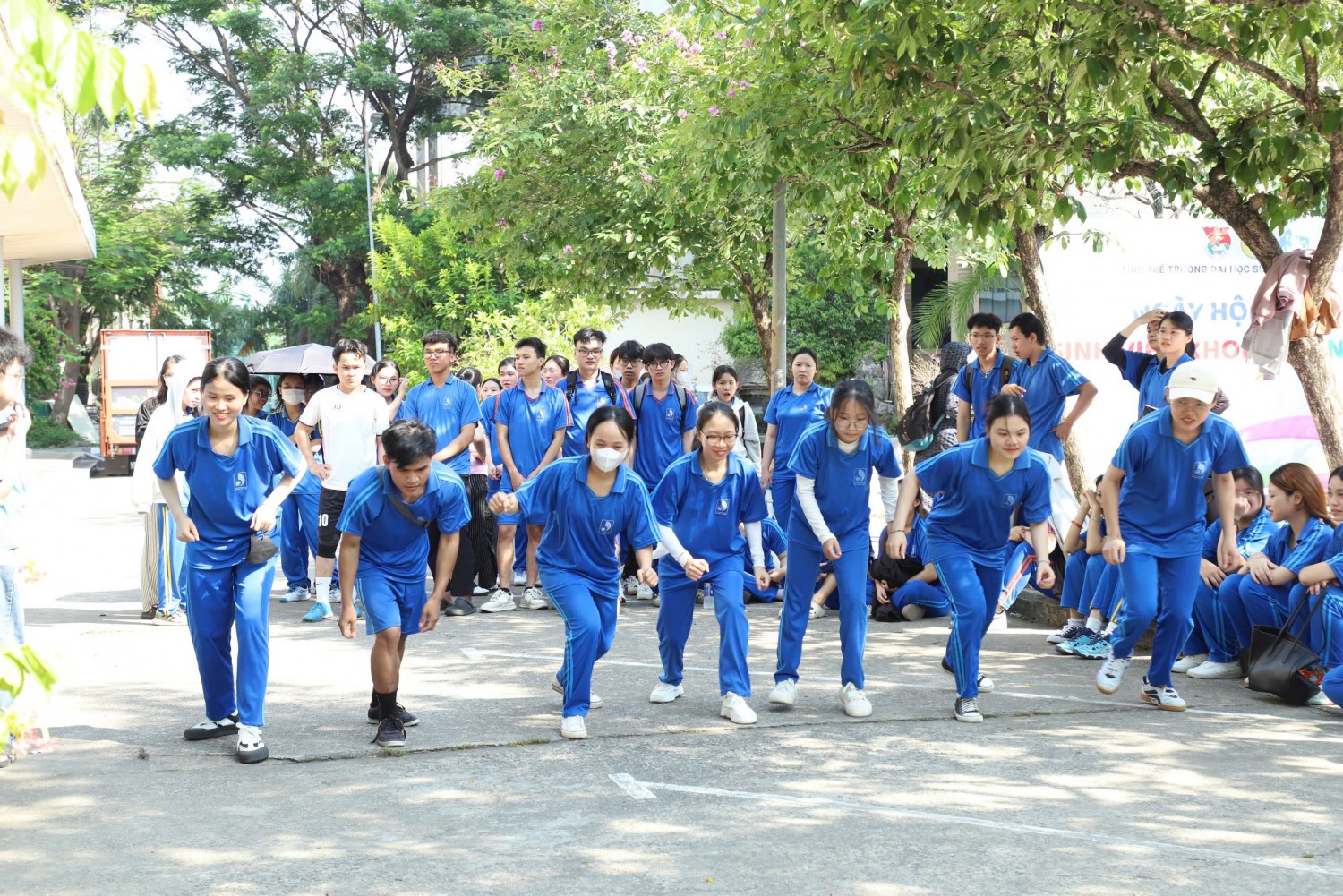 Các nội dung thi đấu bao gồm: chạy cự ly ngắn, bật xa tại chỗ, nằm ngửa gập bụng, chống đẩy và nhảy dây. Mỗi phần thi đều thu hút đông đảo sinh viên tham gia và cổ vũ nhiệt tình, tạo nên một sân chơi thể thao náo nhiệt và rộn ràng tiếng cười. Thông qua các hoạt động này, chương trình không chỉ góp phần nâng cao thể lực mà còn khuyến khích sinh viên hình thành thói quen rèn luyện thường xuyên, hướng đến lối sống lành mạnh và tích cực hơn.