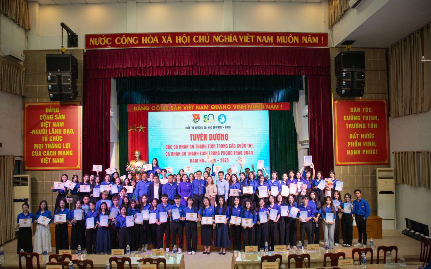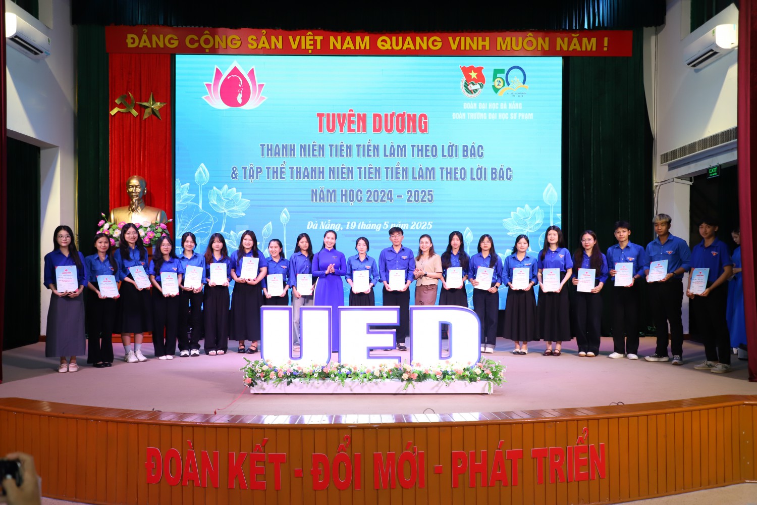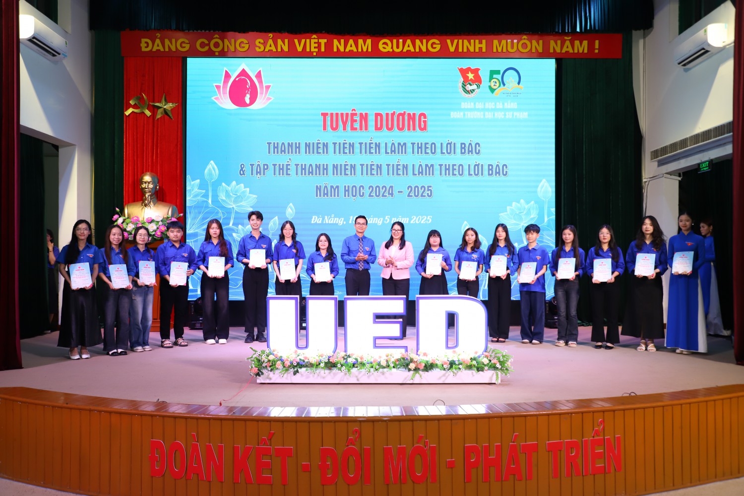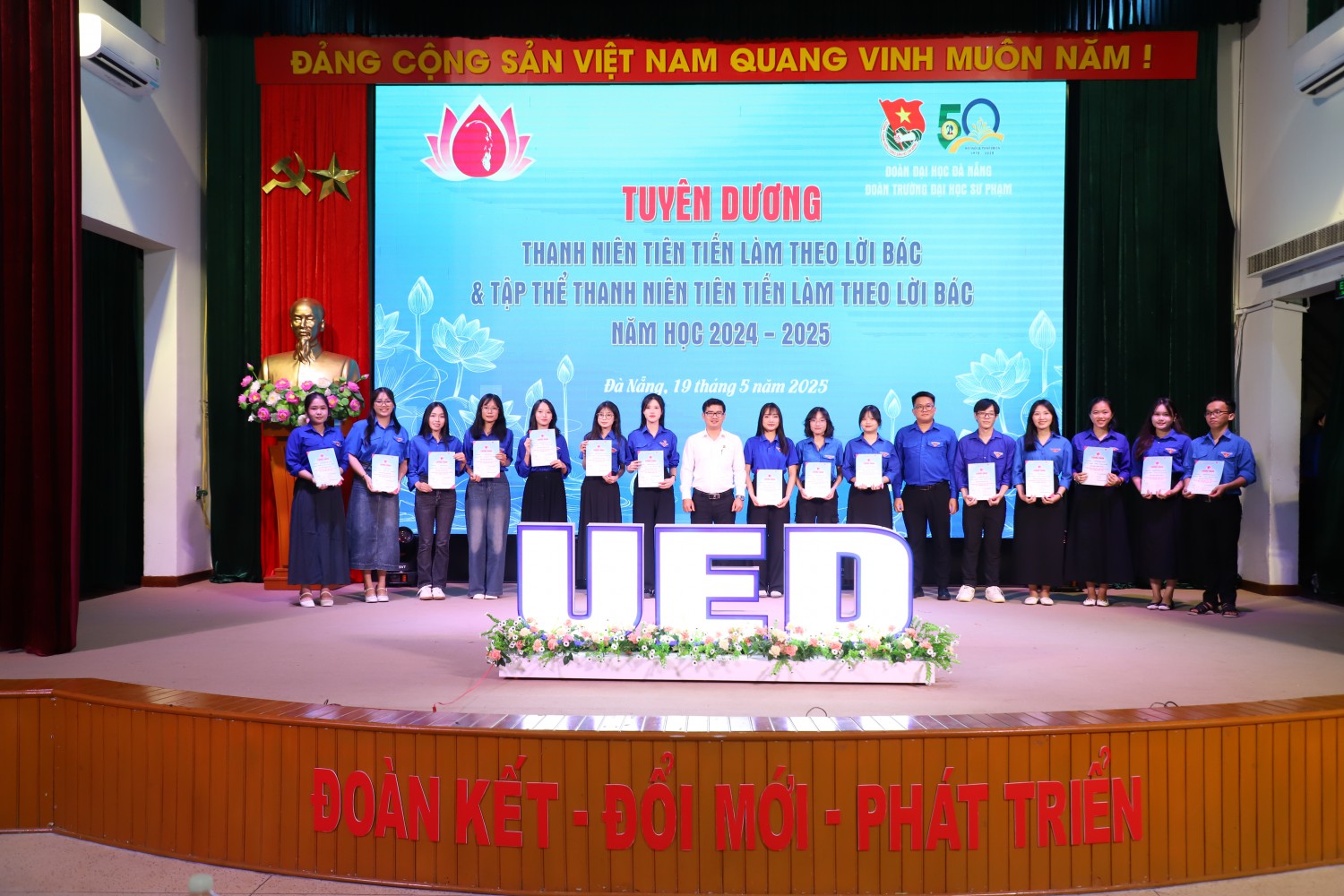 Lễ tuyên dương khép lại trong không khí trang trọng, ấm áp và đầy cảm hứng. Những gương mặt được vinh danh hôm nay chính là hình ảnh sinh động về thế hệ thanh niên Trường Đại học Sư phạm – Đại học Đà Nẵng “vừa hồng, vừa chuyên”, sẵn sàng kế tục sự nghiệp cách mạng, phụng sự đất nước bằng tri thức, nhân cách và khát vọng cống hiến không ngừng.