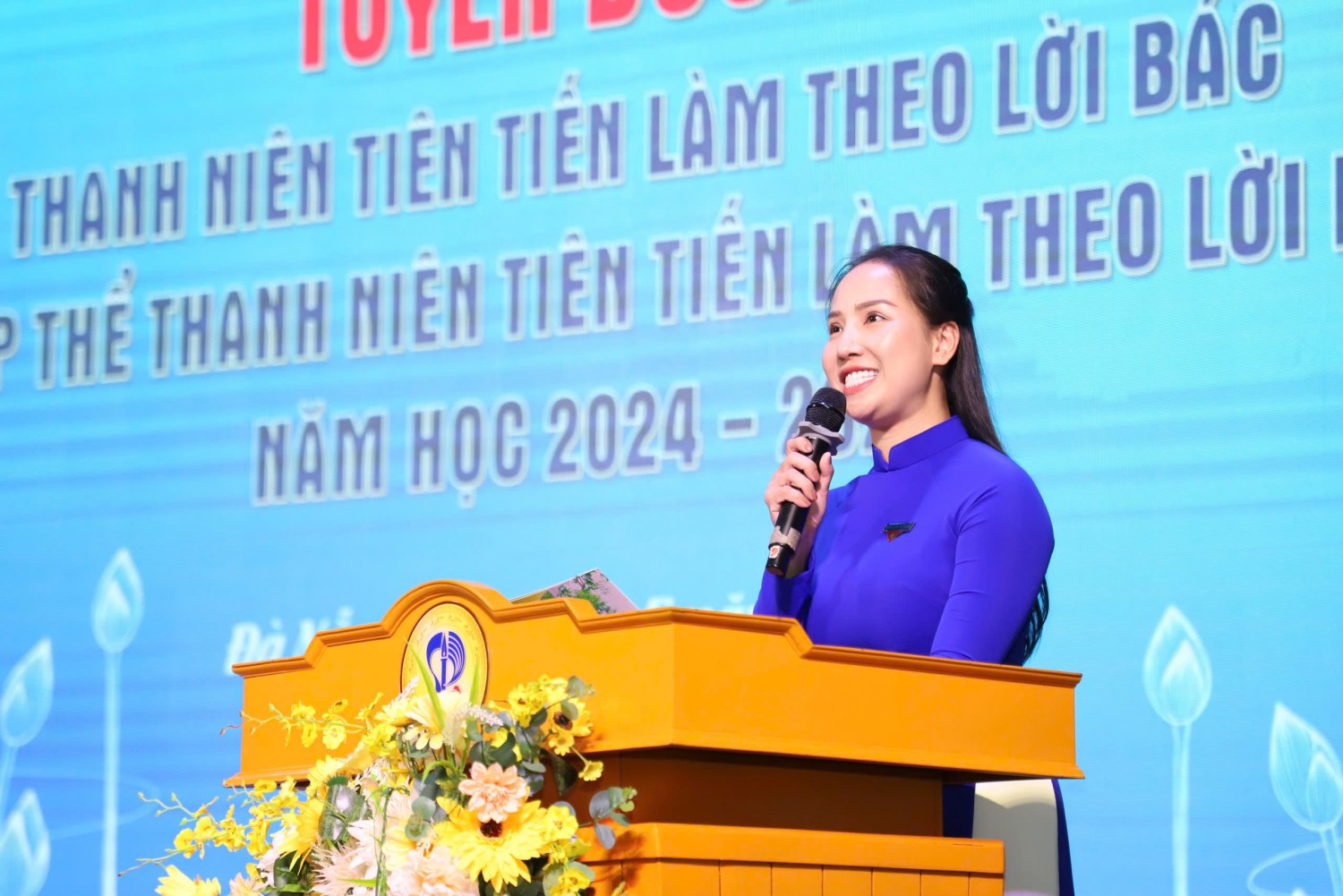 Phát biểu khai mạc, đồng chí Nguyễn Hoàng Tịnh Uyên – Bí thư Đoàn trường đã thay mặt lãnh đạo gửi lời chúc mừng tới các bạn sinh viên và cán bộ Đoàn – Hội được vinh danh. Đồng chí nhấn mạnh rằng danh hiệu “Thanh niên Tiên tiến Làm theo lời Bác” không chỉ ghi nhận kết quả học tập, rèn luyện mà còn khẳng định vai trò tiên phong của sinh viên trong việc lan tỏa giá trị đạo đức Hồ Chí Minh. Ngoài ra, đồng chí Nguyễn Hoàng Tịnh Uyên kêu gọi mỗi cá nhân tiếp tục phát huy tinh thần sáng tạo, ý thức trách nhiệm và tinh thần vì cộng đồng, góp phần xây dựng hình ảnh thanh niên tương lai “vừa hồng, vừa chuyên”.