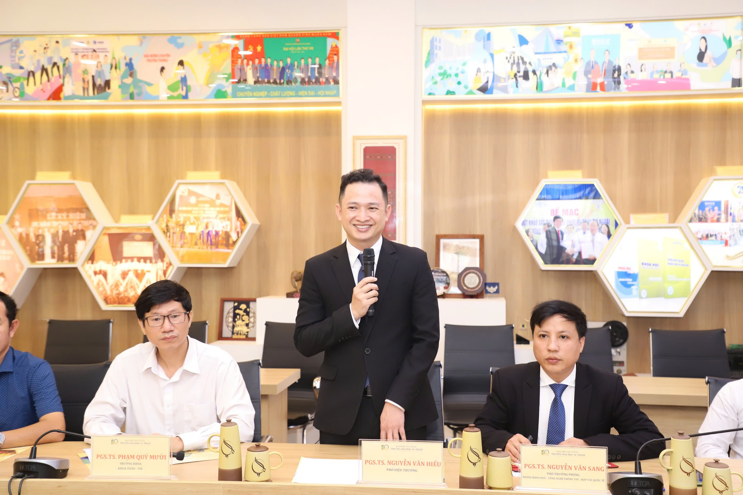 Phát biểu khai mạc buổi lễ, PGS.TS. Nguyễn Văn Hiếu bày tỏ vui mừng khi được đón tiếp đoàn công tác của Viện Toán học đến thăm và làm việc, đồng thời khẳng định tầm quan trọng của việc thiết lập mối quan hệ hợp tác giữa hai đơn vị trong bối cảnh phát triển giáo dục và khoa học công nghệ hiện nay. GS.TSKH. Đinh Nho Hào cũng chia sẻ kỳ vọng về những thành quả thiết thực từ sự hợp tác này, đặc biệt trong lĩnh vực nghiên cứu ứng dụng toán học vào thực tiễn.
