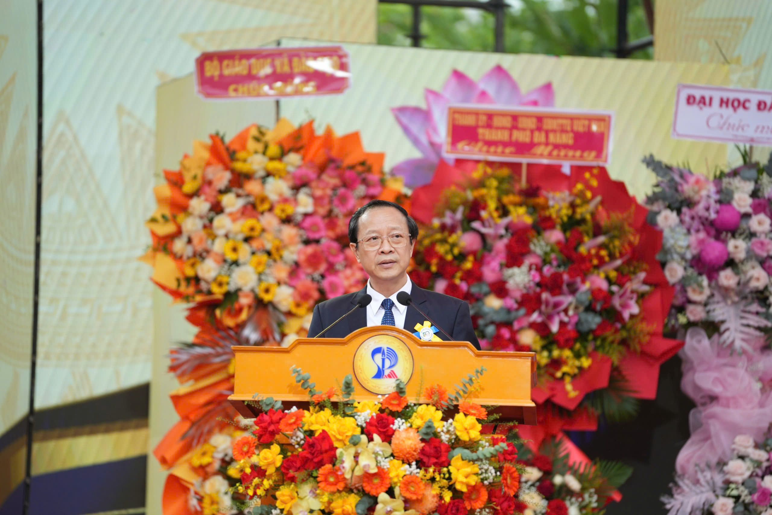 Thứ trưởng thường trực Bộ Giáo dục và Đào tạo Phạm Ngọc Thưởng phát biểu chúc mừng tập thể Trường Đại học Sư phạm – Đại học Đà Nẵng.