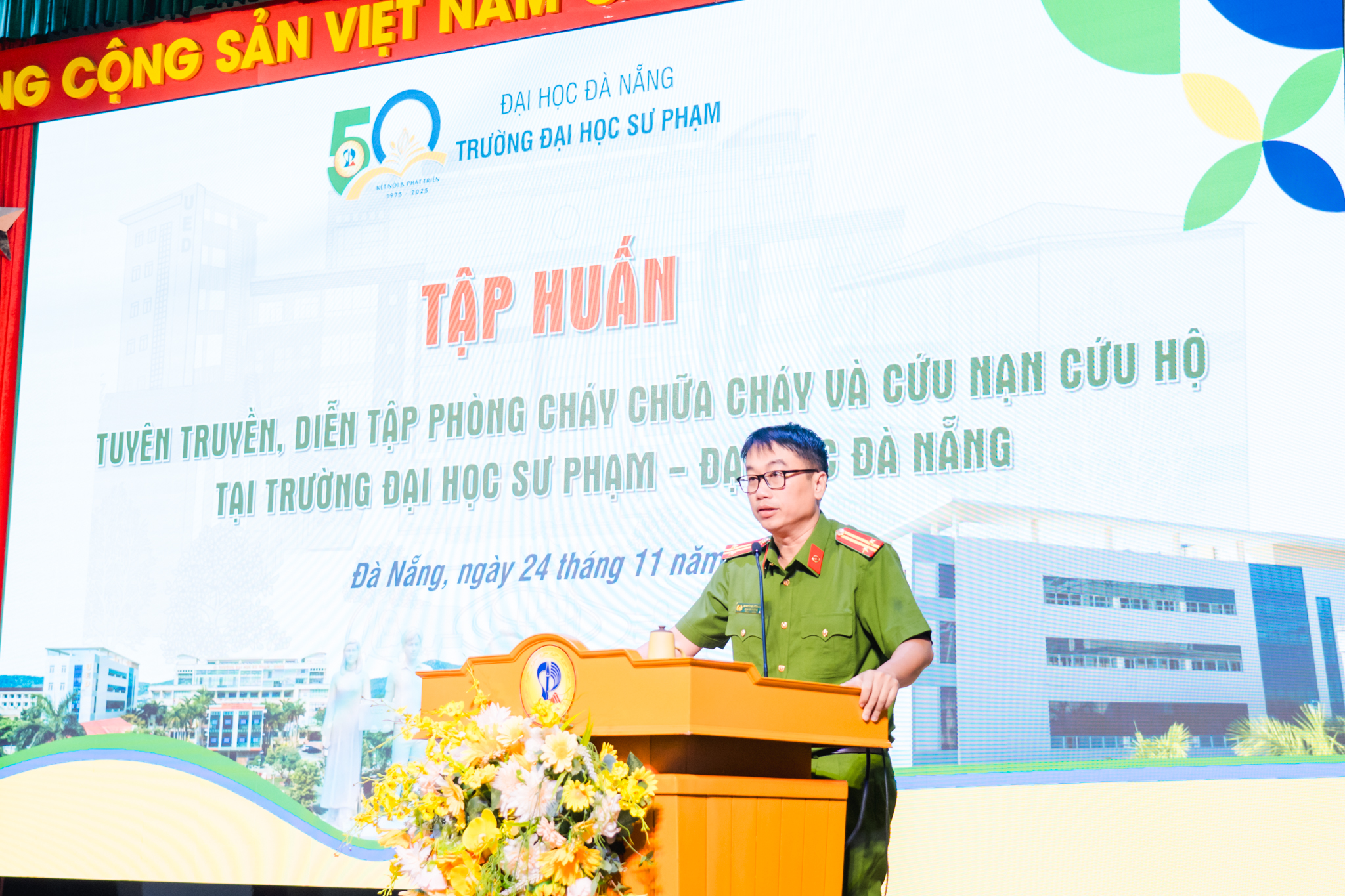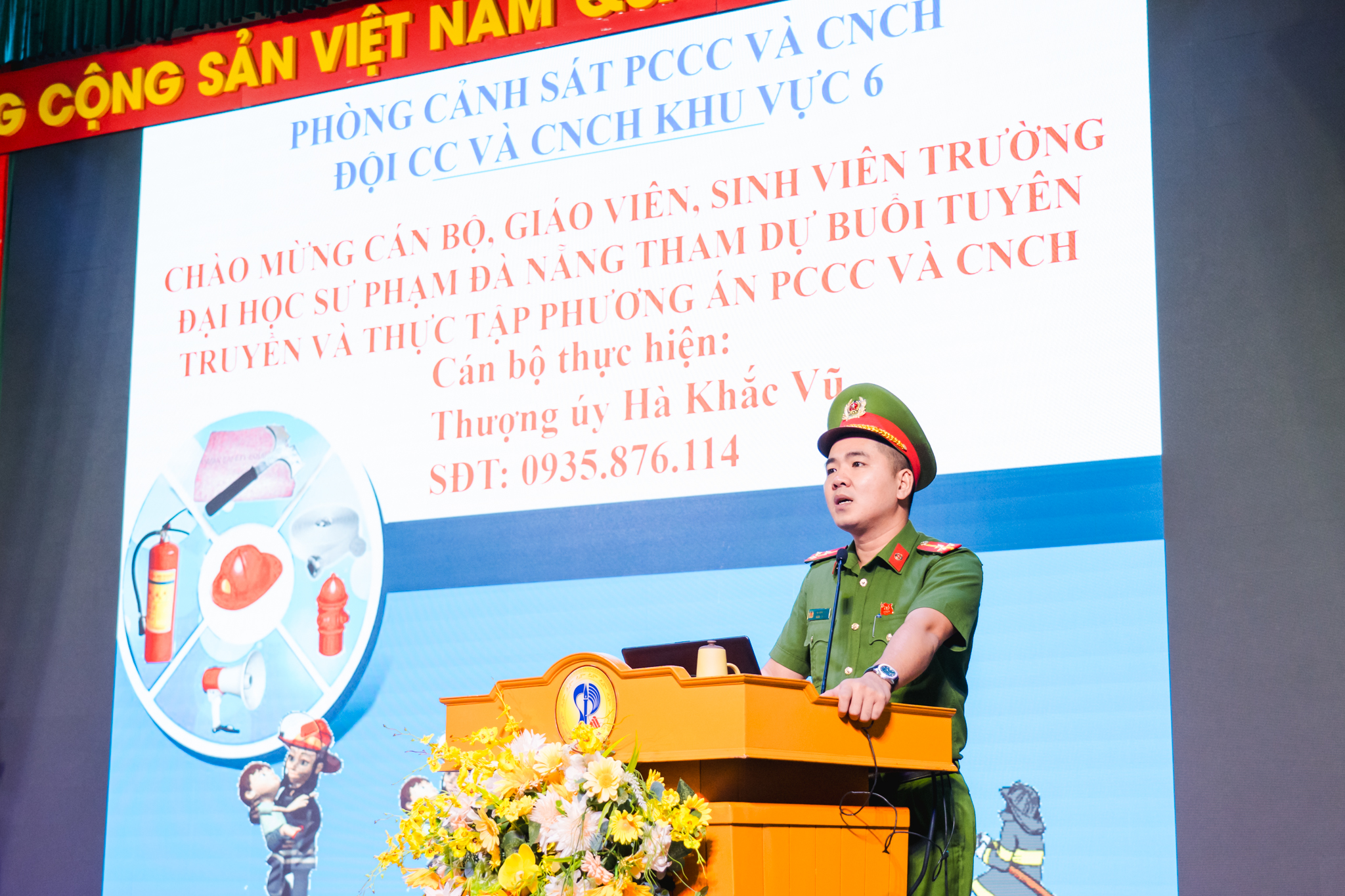 Sáng ngày 24/11, tại Trường Đại học Sư phạm – Đại học Đà Nẵng, chương trình tập huấn “Phòng cháy, chữa cháy và cứu nạn cứu hộ” đã được tổ chức với sự tham gia của đông đảo cán bộ, giảng viên, nhân viên và sinh viên nhà trường. Đây là hoạt động thường niên nhằm nâng cao kỹ năng xử lý tình huống khẩn cấp, đồng thời tăng cường ý thức đảm bảo an toàn trong môi trường giáo dục.