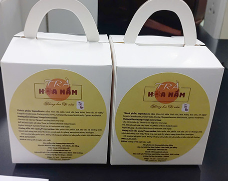 Sản phẩm trà túi lọc từ nấm Linh chi cổ cò thu hái tại Vườn quốc gia Kon Ka Kinh do nhóm sinh viên UED thực hiện.