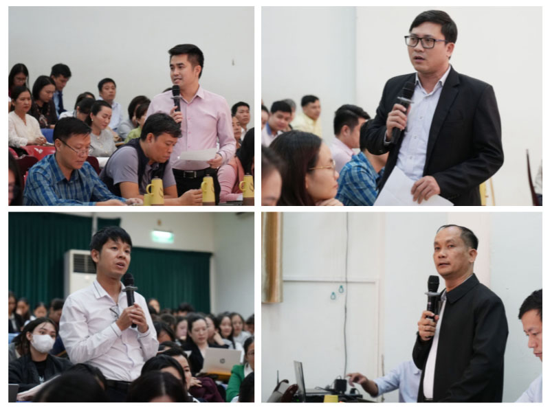 Cũng tại hội nghị, đại diện lãnh đạo các phòng Đào tạo, Quản lý người học – Thư viện, Tổ chức và Khoa Sử – Địa – Chính trị đã trình bày các báo cáo tham luận về giải pháp nâng cao chất lượng đào tạo, phát triển văn hóa học đường, cải tiến quy trình quản trị và ứng dụng chuyển đổi số trong công tác quản lý. Các tham luận đã làm rõ vai trò của từng đơn vị trong việc cụ thể hóa nghị quyết vào thực tiễn, đồng thời đề xuất nhiều giải pháp thiết thực nhằm nâng cao hiệu quả hoạt động của Nhà trường trong giai đoạn mới.