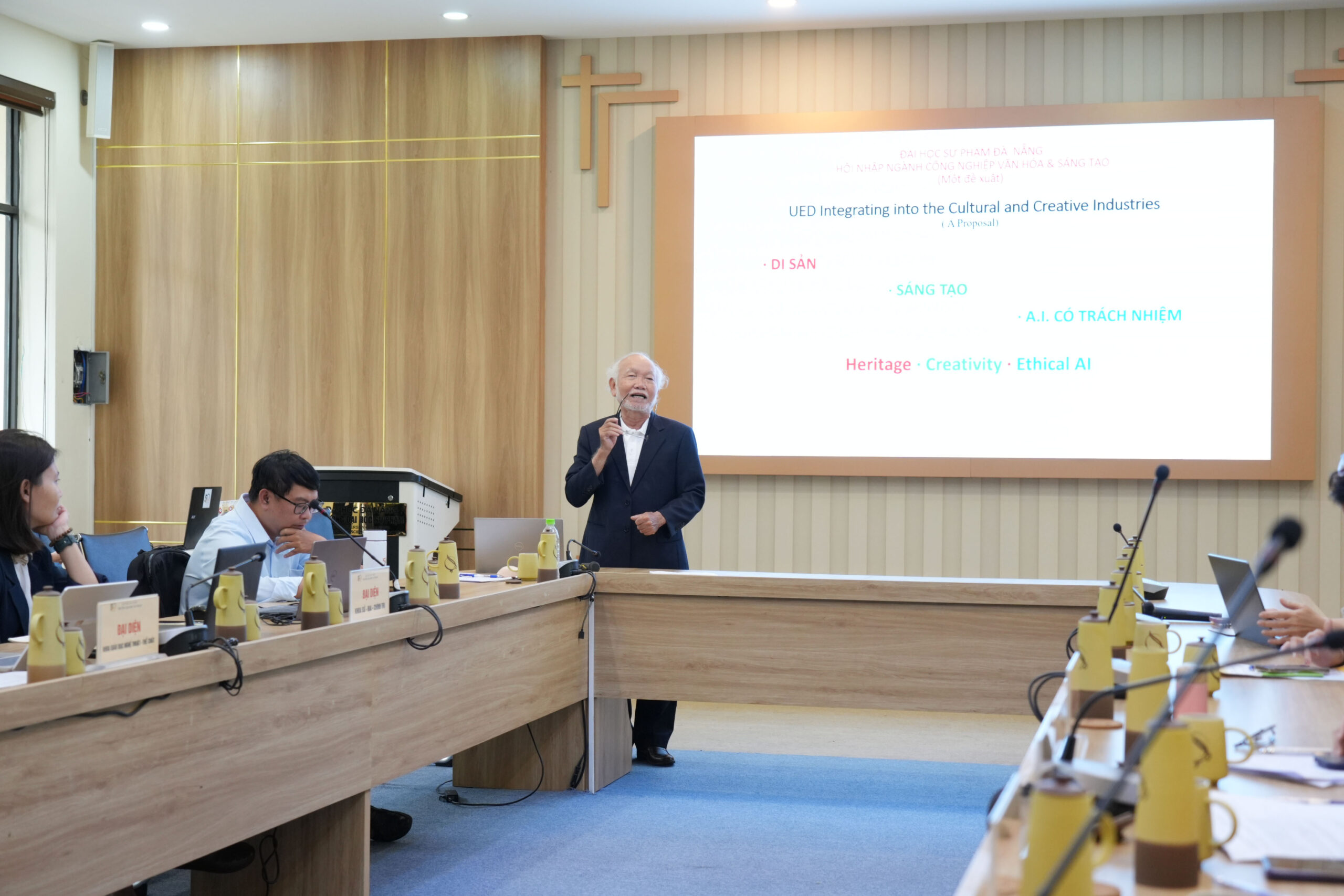 Tọa đàm do PGS.TS. Võ Văn Minh, Hiệu trưởng Nhà trường chủ trì cùng với sự tham dự của đại diện lãnh đạo các sở Văn hóa, Thể thao và Du lịch; Sở Khoa học và Công nghệ; Liên hiệp các Hội Văn học – Nghệ thuật; đại diện các thiết chế văn hóa, doanh nghiệp sáng tạo, cùng đông đảo chuyên gia, nhà nghiên cứu và giảng viên các khoa thuộc Trường Đại học Sư phạm – Đại học Đà Nẵng.