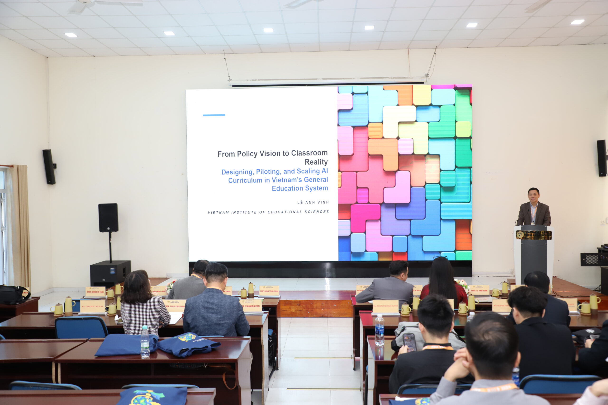 GS. Lê Anh Vinh – Viện trưởng Viện Khoa học Giáo dục Việt Nam – trình bày bài keynote về quá trình thiết kế, thí điểm và triển khai chương trình AI trong giáo dục phổ thông Việt Nam