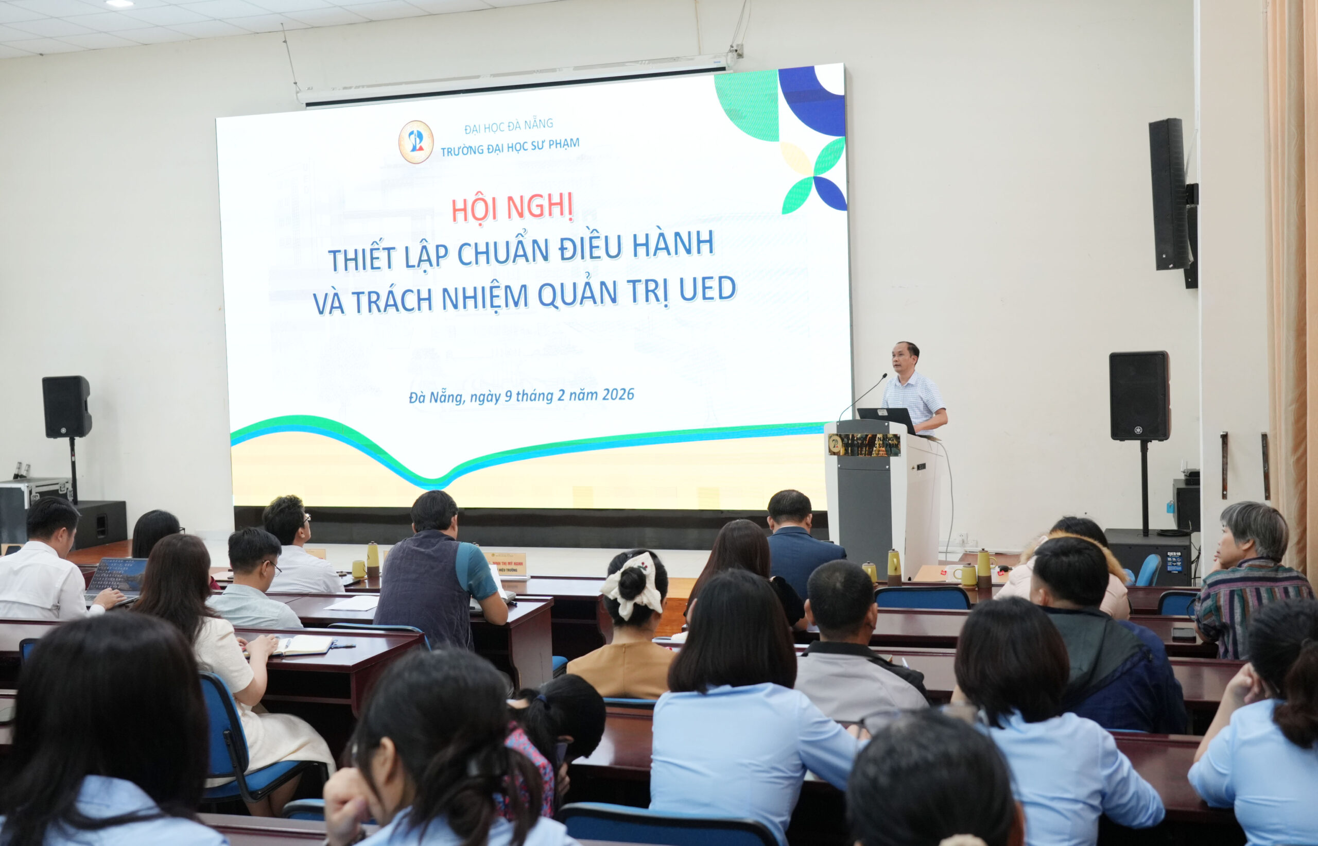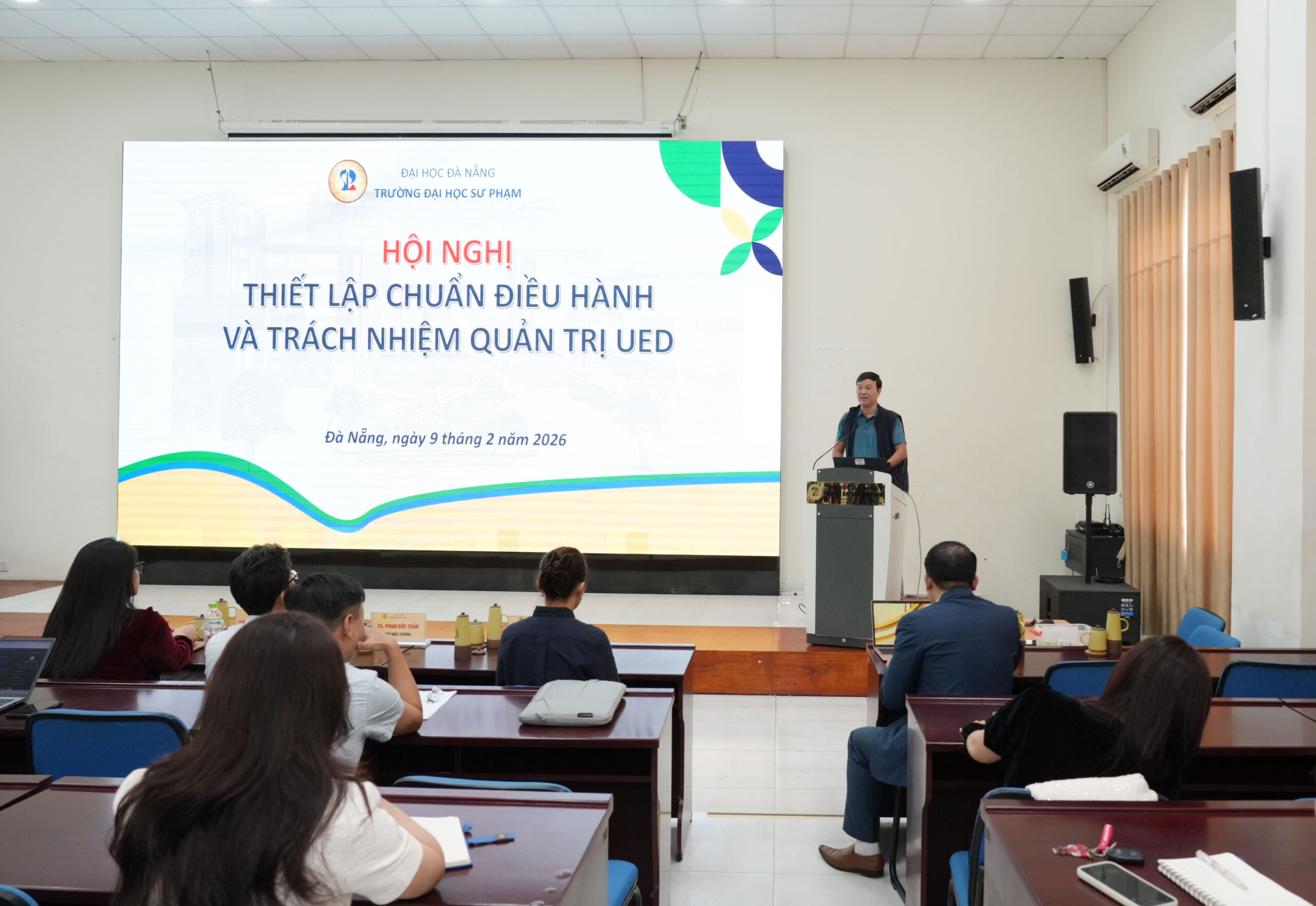 Sáng ngày 09/02/2026, Trường Đại học Sư phạm – Đại học Đà Nẵng (UED) tổ chức Hội nghị Thiết lập Chuẩn điều hành và Trách nhiệm quản trị UED, với sự tham dự của tập thể lãnh đạo Trường và toàn thể các phòng chức năng. Hội nghị do PGS.TS. Võ Văn Minh, Hiệu trưởng Nhà trường chủ trì.