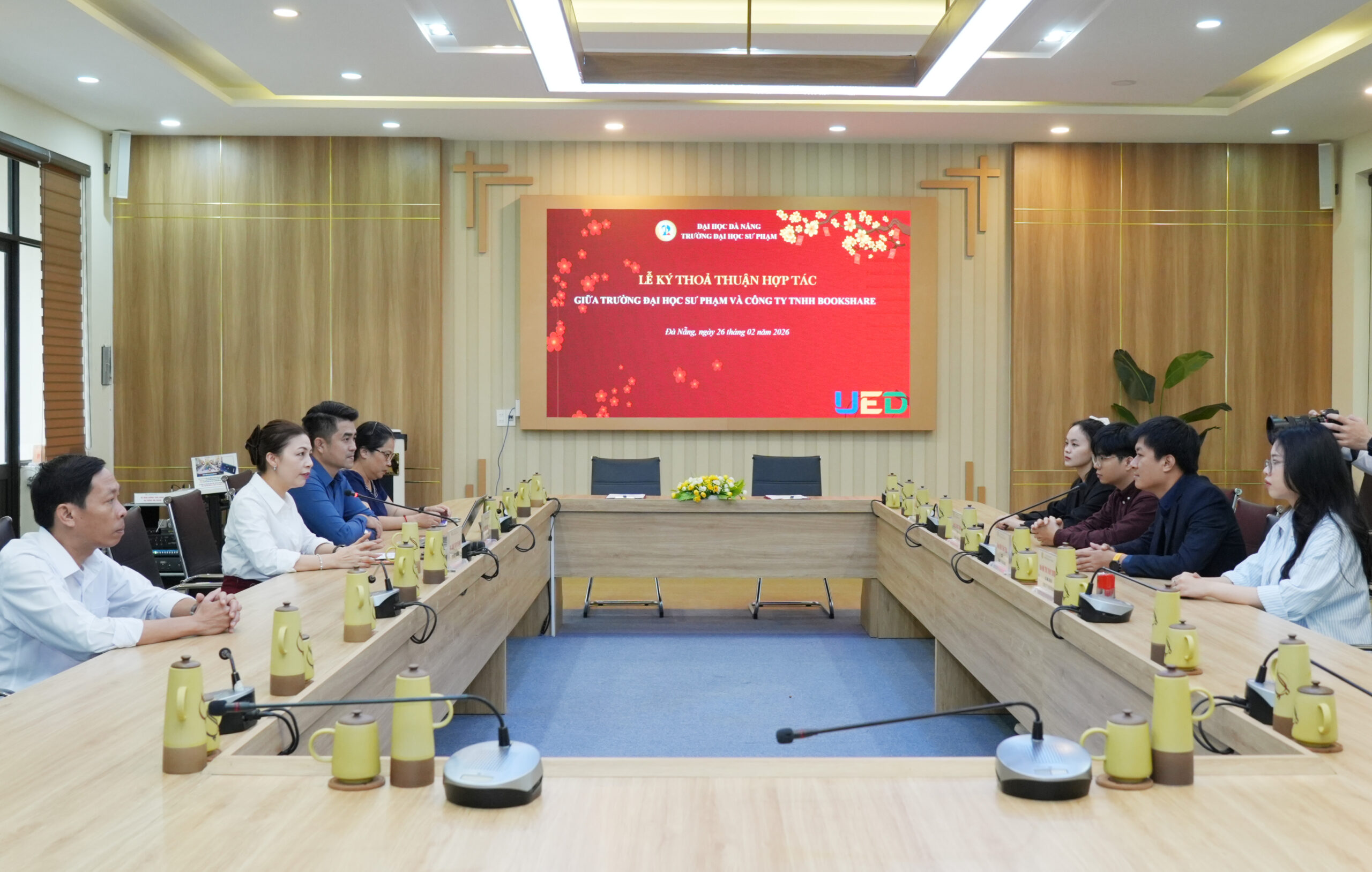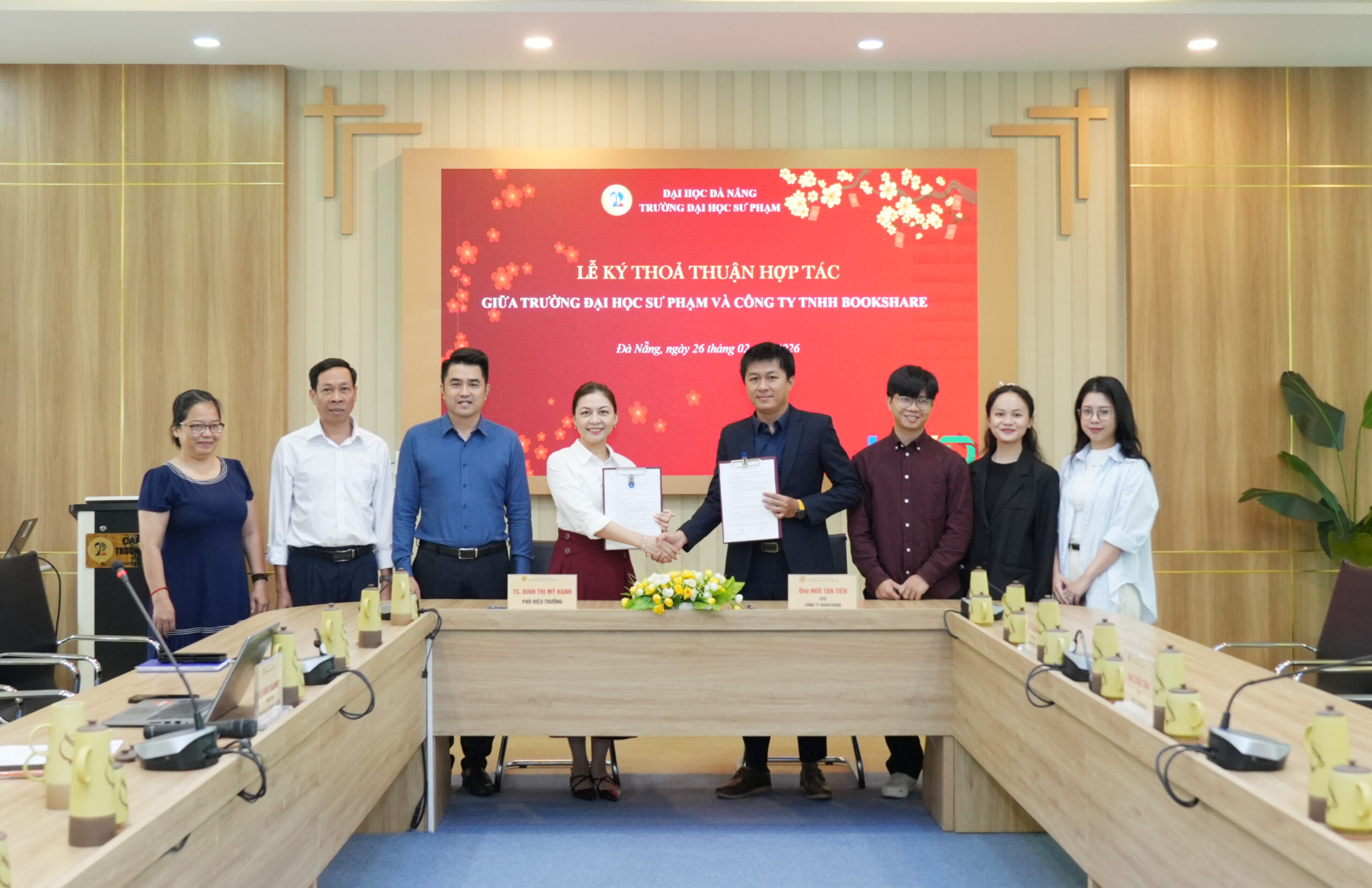 Ngày 26/2/2026, tại Trường Đại học Sư phạm – Đại học Đà Nẵng (UED) đã diễn ra lễ ký kết thỏa thuận hợp tác giữa Nhà trường với Công ty TNHH Bookshare về việc tài trợ và triển khai hệ thống quản lý thư viện Skoolib. Đây là bước tiến quan trọng của UED trong quá trình số hóa công tác quản lý thư viện, qua đó hỗ trợ trực tiếp và hiệu quả cho hoạt động dạy và học.