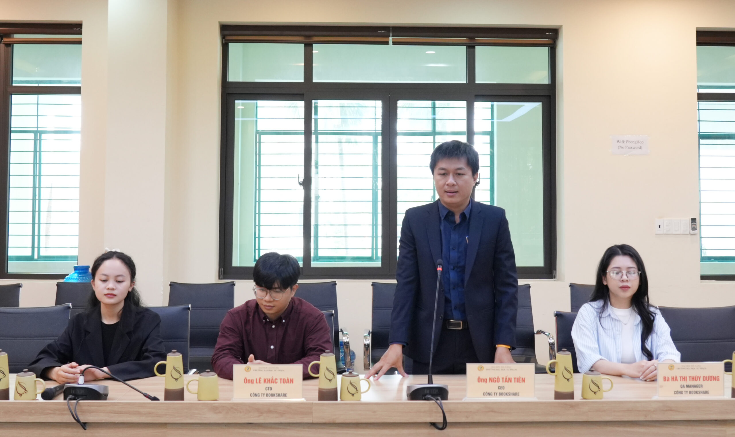 Đại diện phía Công ty TNHH Bookshare, ông Ngô Tấn Tiên, Giám đốc Công ty cũng bày tỏ niềm vinh hạnh khi được trở thành đối tác của một trong những cơ sở đào tạo sư phạm trọng điểm của khu vực miền Trung và cả nước. Phía công ty cam kết sẽ huy động nguồn lực tốt nhất để quá trình triển khai hệ thống diễn ra đúng tiến độ, đồng thời sẽ luôn sát cánh cùng Nhà trường trong công tác bảo trì, nâng cấp phần mềm để đảm bảo hiệu quả vận hành lâu dài và xuyên suốt.