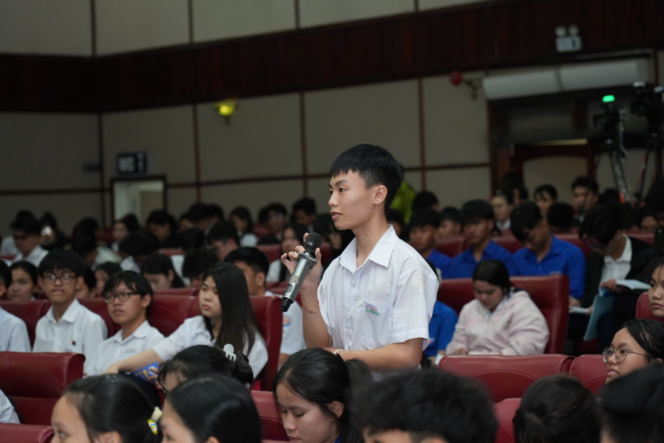 Học sinh đặt câu hỏi tại Chương trình tư vấn hướng nghiệp, xét tuyển đại học – cao đẳng năm 2026 tổ chức tại Gia Lai.