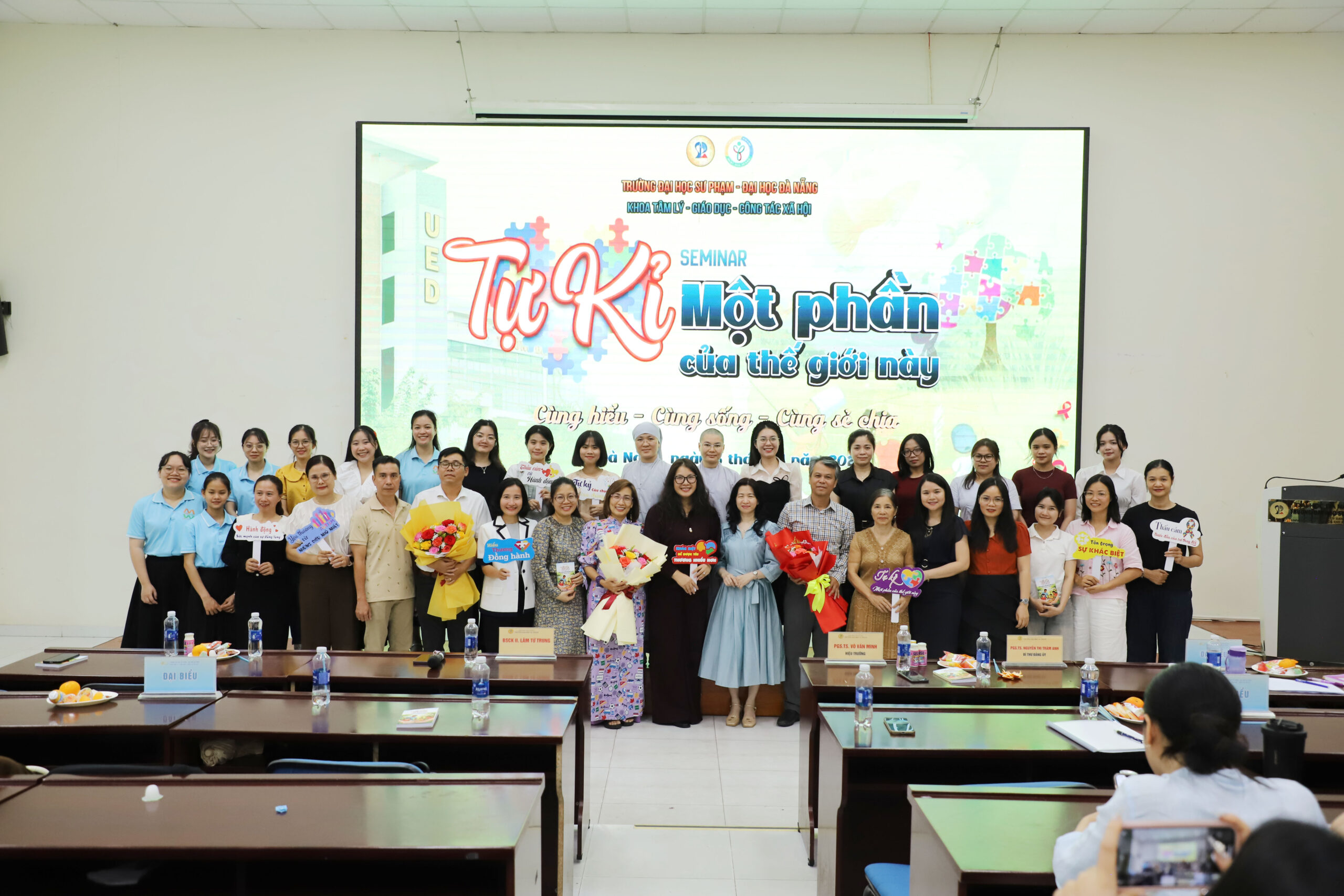 Seminar có sự tham dự và báo cáo chia sẻ của bác sĩ CK II Lâm Tứ Trung, Phó Chủ tịch Hội Tâm lí trị liệu Việt Nam. Về phía Trường Đại học Sư phạm – Đại học Đà Nẵng có sự tham dự của PGS.TS. Võ Văn Minh, Ủy viên BCH Đảng bộ ĐHĐN, Hiệu trưởng Nhà trường đồng thời là tác giả cuốn sách “Tự kỉ – một phần của thế giới này” và PGS.TS. Nguyễn Thị Trâm Anh, Bí thư Đảng ủy Trường. Sự kiện đặc biệt thu hút sự quan tâm tham dự của nhiều chuyên gia, giảng viên, sinh viên và các phụ huynh có con tự kỉ.