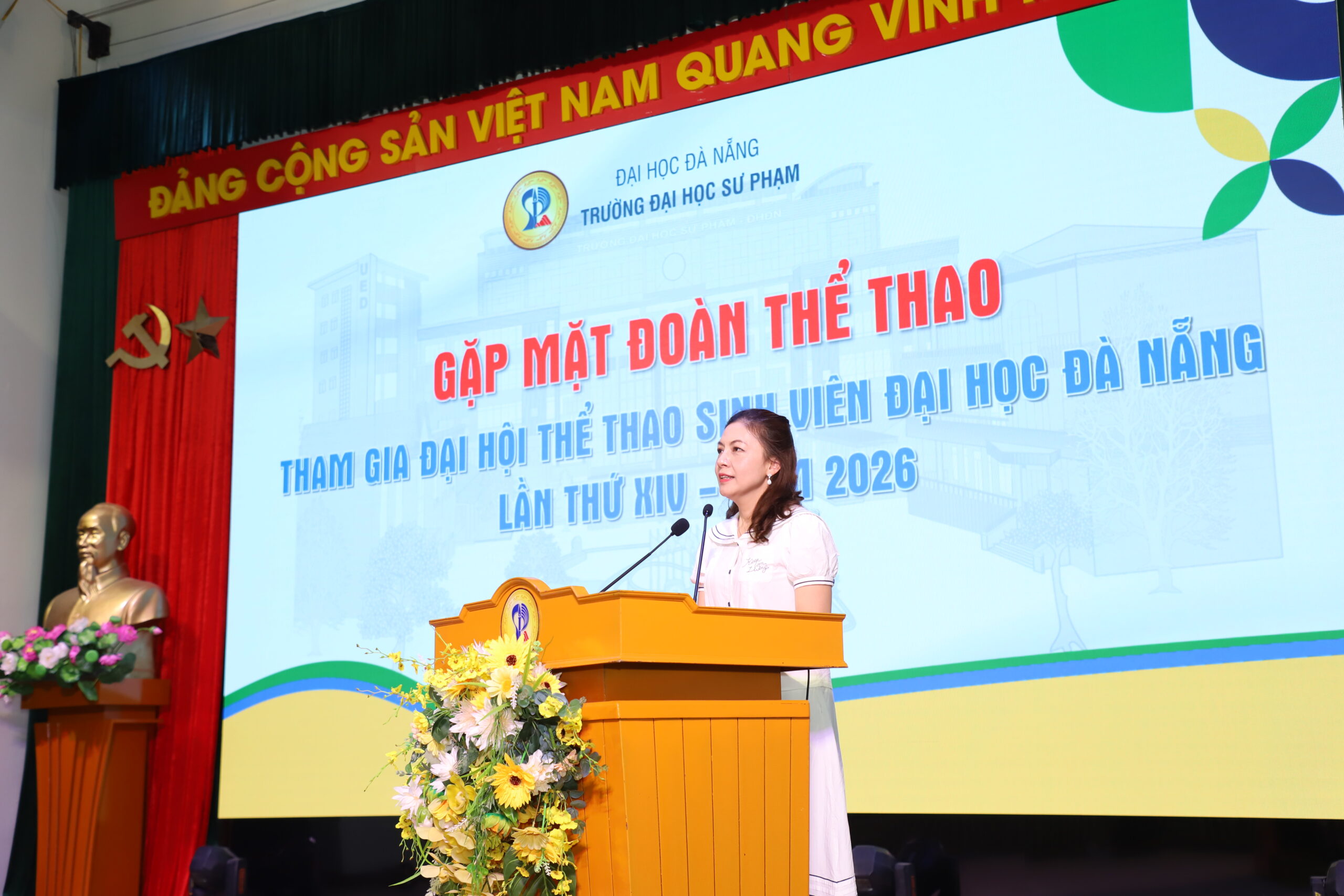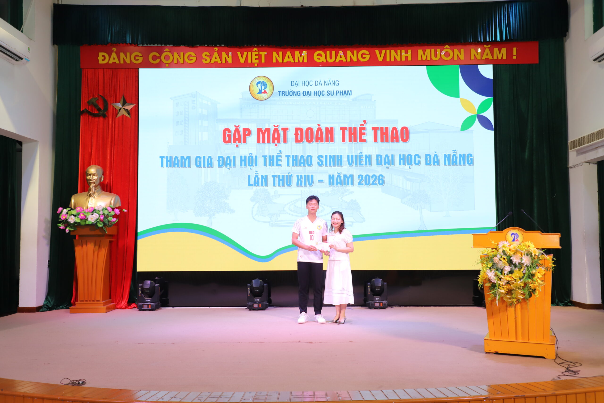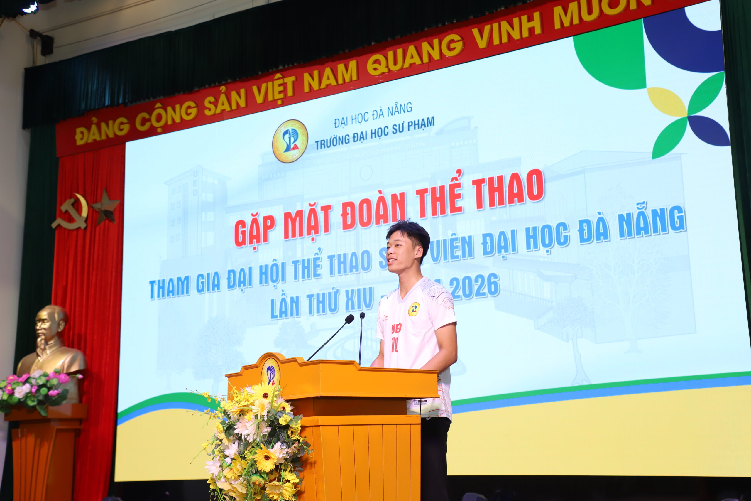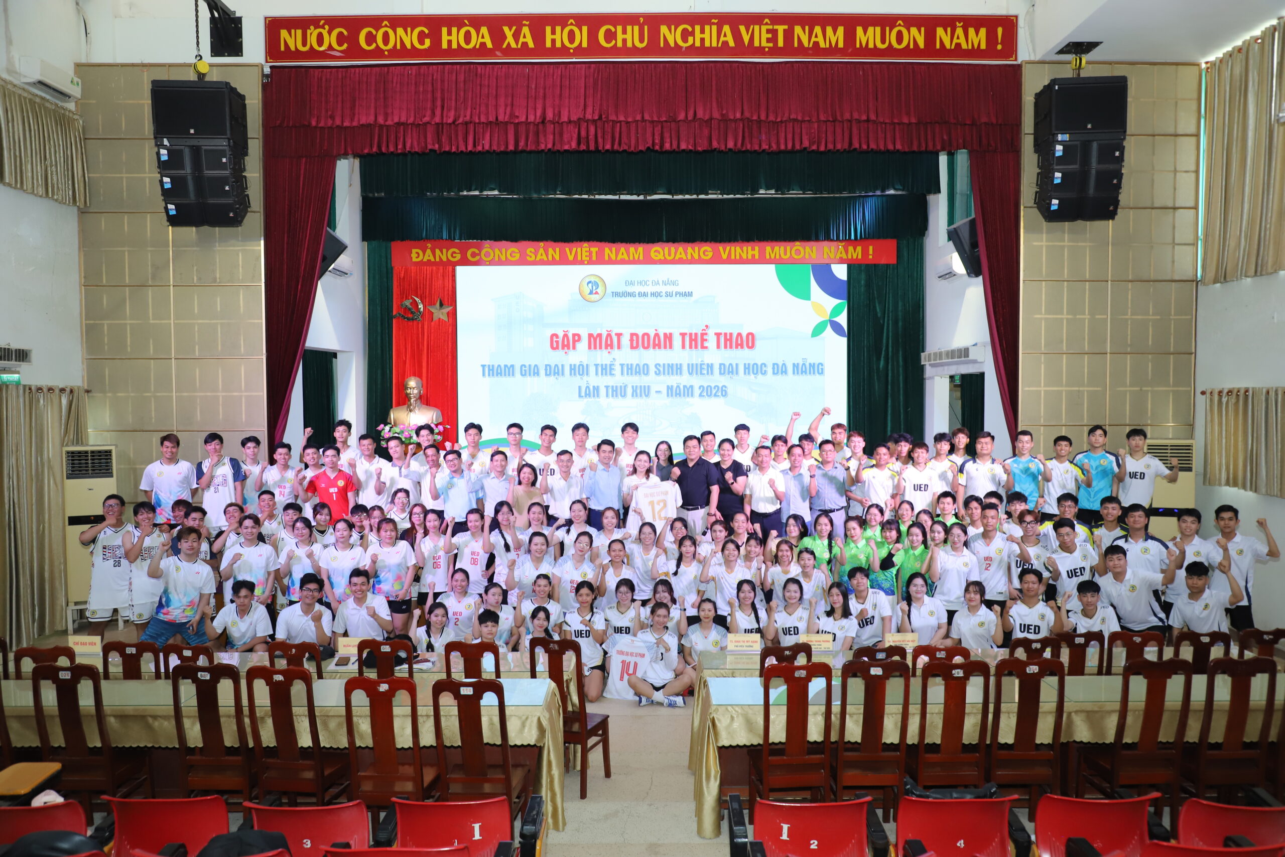 Ngày 7/4, nhằm động viên tinh thần và tiếp thêm động lực cho sinh viên trước thềm Đại hội Thể thao Sinh viên Đại học Đà Nẵng lần thứ XIV năm 2026, Trường Đại học Sư phạm – Đại học Đà Nẵng (UED) đã tổ chức chương trình gặp mặt đoàn vận động viên của Nhà trường tham gia tranh tài tại Đại hội.