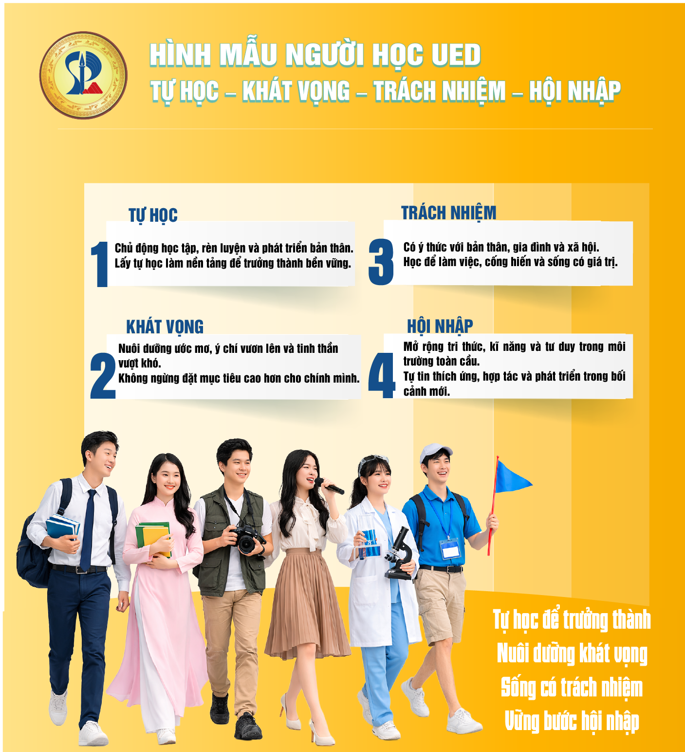 Hình mẫu người học UED: Tự học – Khát vọng – Trách nhiệm – Hội nhập