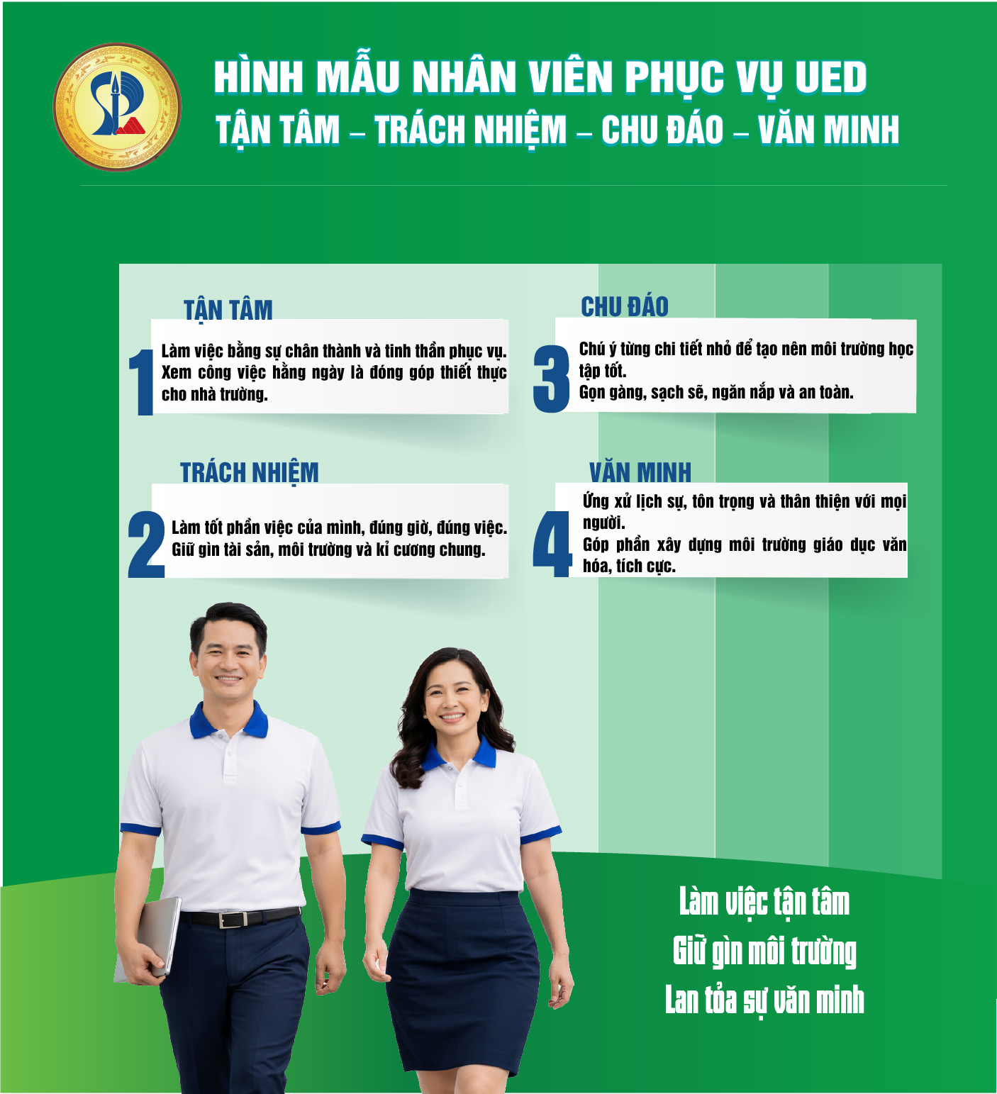 Hình mẫu nhân viên phục vụ UED: Tận tâm – Trách nhiệm – Chu đáo – Văn minh