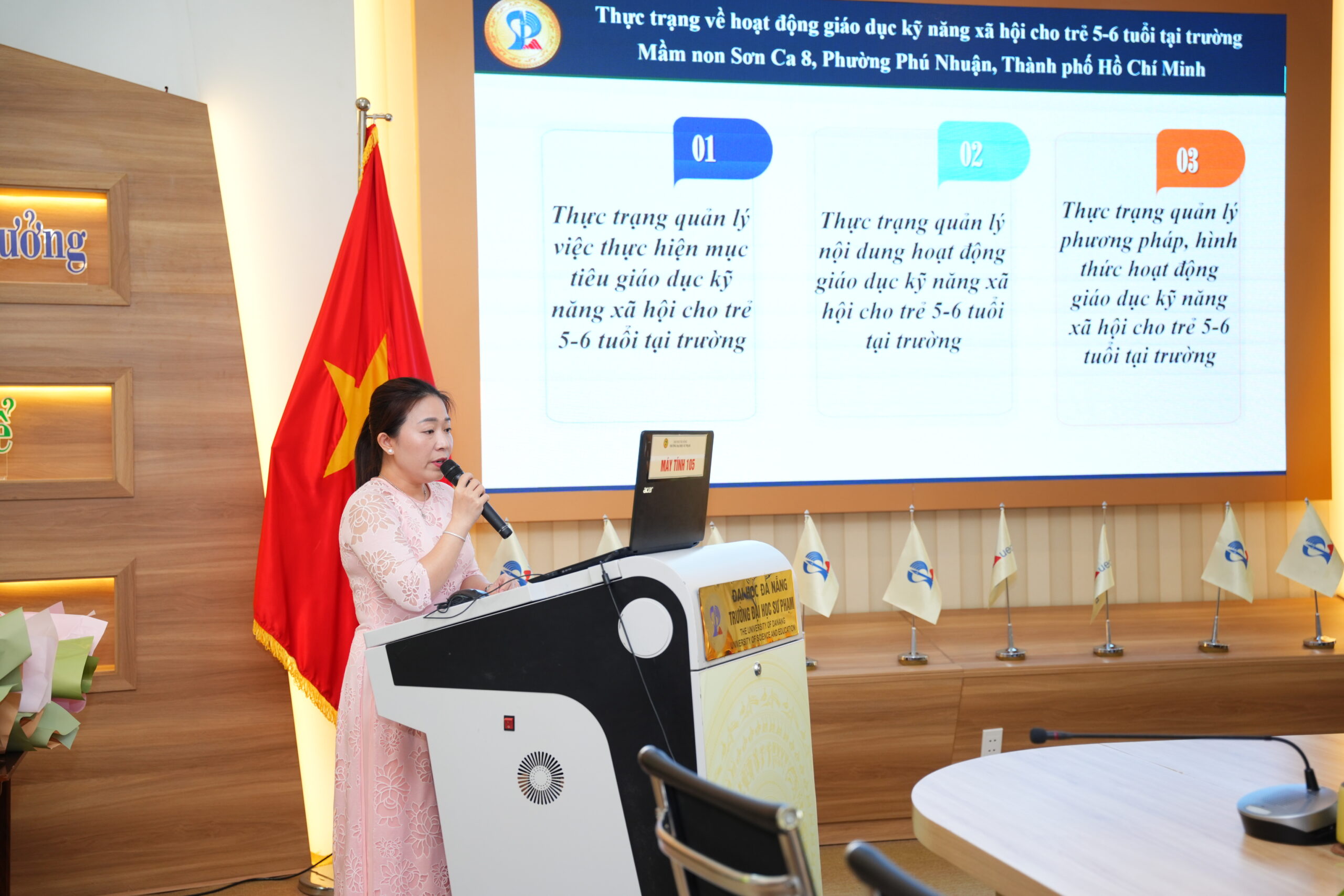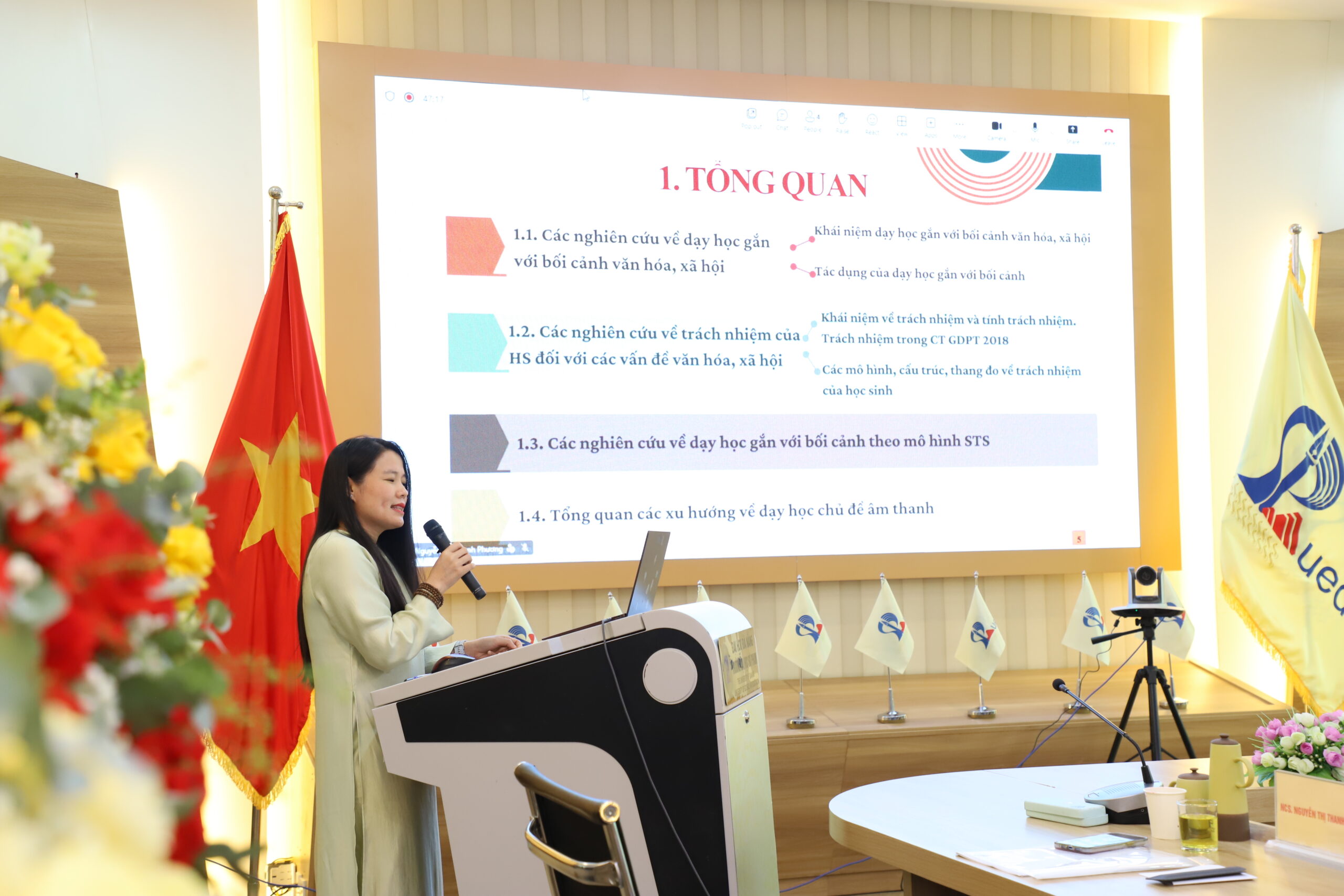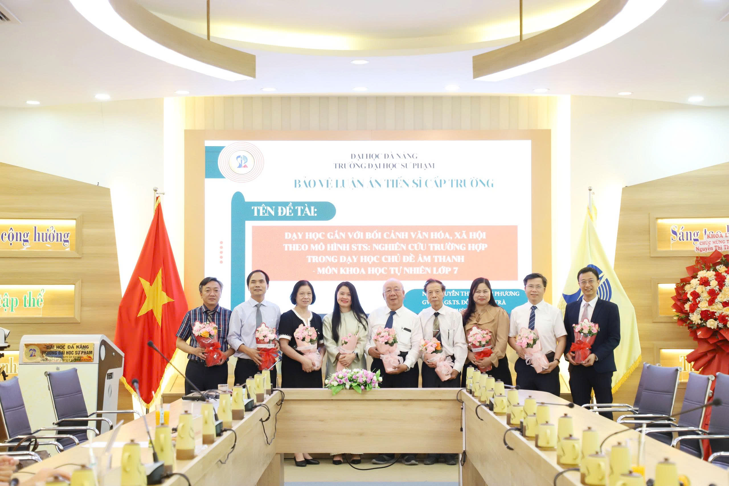 Sáng 19/4, Trường Đại học Sư phạm – Đại học Đà Nẵng tổ chức bảo vệ luận án tiến sĩ cấp trường cho nghiên cứu sinh (NCS) Nguyễn Thị Thanh Phương, ngành Lý luận và phương pháp dạy học bộ môn Vật lý. Luận án có đề tài: Dạy học gắn với bối cảnh văn hóa, xã hội theo mô hình STS: Nghiên cứu trường hợp trong dạy học chủ đề “Âm thanh” – Môn Khoa học tự nhiên lớp 7, được thực hiện dưới sự hướng dẫn khoa học của GS.TS. Đỗ Hương Trà và TS. Phùng Việt Hải.