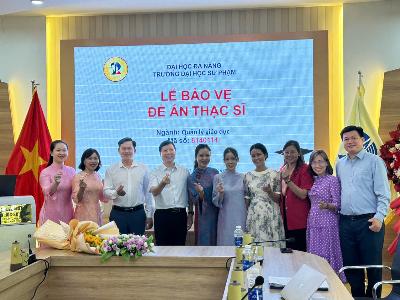 NCS Nguyễn Thị Thanh Phương cùng giảng viên hướng dẫn và Hội đồng đánh giá.