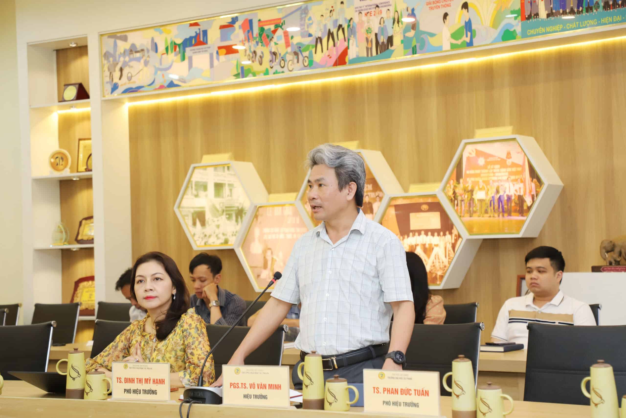 PGS.TS. Võ Văn Minh, Hiệu trưởng Nhà trường phát biểu tại buổi làm việc.