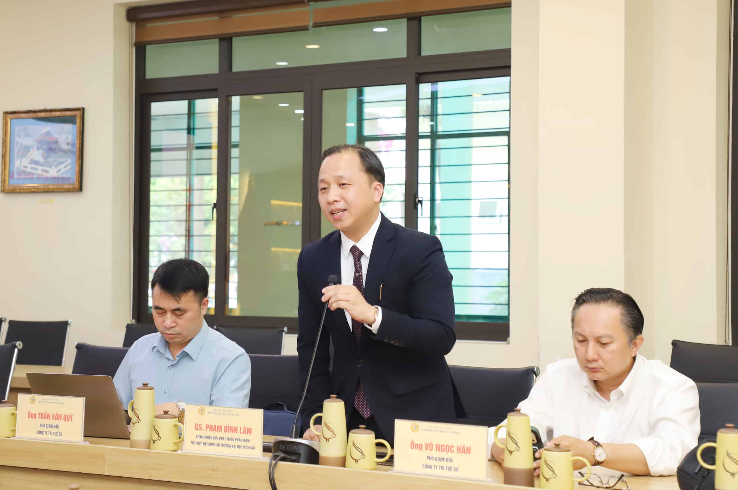 Hiệu trưởng Nhà trường gửi lời cảm ơn đến TS. Phạm Đình Lâm và các cộng sự đã dành thời gian chia sẻ kinh nghiệm, đồng thời kỳ vọng những định hướng, khuyến nghị từ phía chuyên gia sẽ góp phần gợi mở các bước đi chiến lược, hỗ trợ UED triển khai chuyển đổi số một cách hiệu quả, bền vững; đồng thời hai bên có thể hợp tác trong một số lĩnh vực trong thời gian tới.