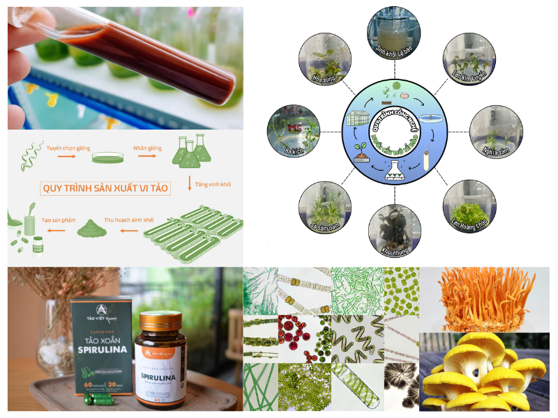 Công nghệ sản xuất vi tảo, nấm ăn và nấm dược liệu quy mô công nghiệp; công nghệ bảo quản, chế biến sau thu hoạch dược liệu, vi tảo và nấm; công nghệ sản xuất thức ăn tự nhiên (từ vi tảo, động vật phù du) cho nuôi trồng thủy sản; công nghệ xử lý môi trường bằng vi tảo, vi sinh vật, cỏ Vetiver; công cụ giám sát môi trường bằng sinh vật chỉ thị.