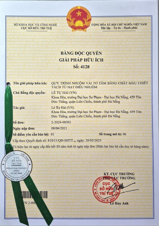 Chuyên mục “Sở hữu trí tuệ” là không gian ghi nhận và lan tỏa những thành quả sáng tạo của đội ngũ cán bộ, giảng viên và sinh viên Trường Đại học Sư phạm – Đại học Đà Nẵng đã được bảo hộ hợp pháp dưới các hình thức như sáng chế, giải pháp hữu ích, giống cây trồng, cùng các loại hình sở hữu trí tuệ khác.