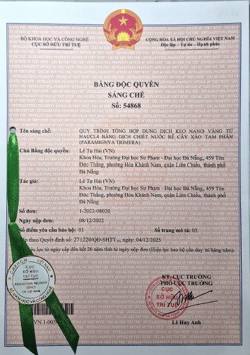 Quy trình tổng hợp dung dịch keo nano vàng từ HAuCl4 bằng dịch chiết nước rễ cây Xáo tam phân (Paramignya trimera)